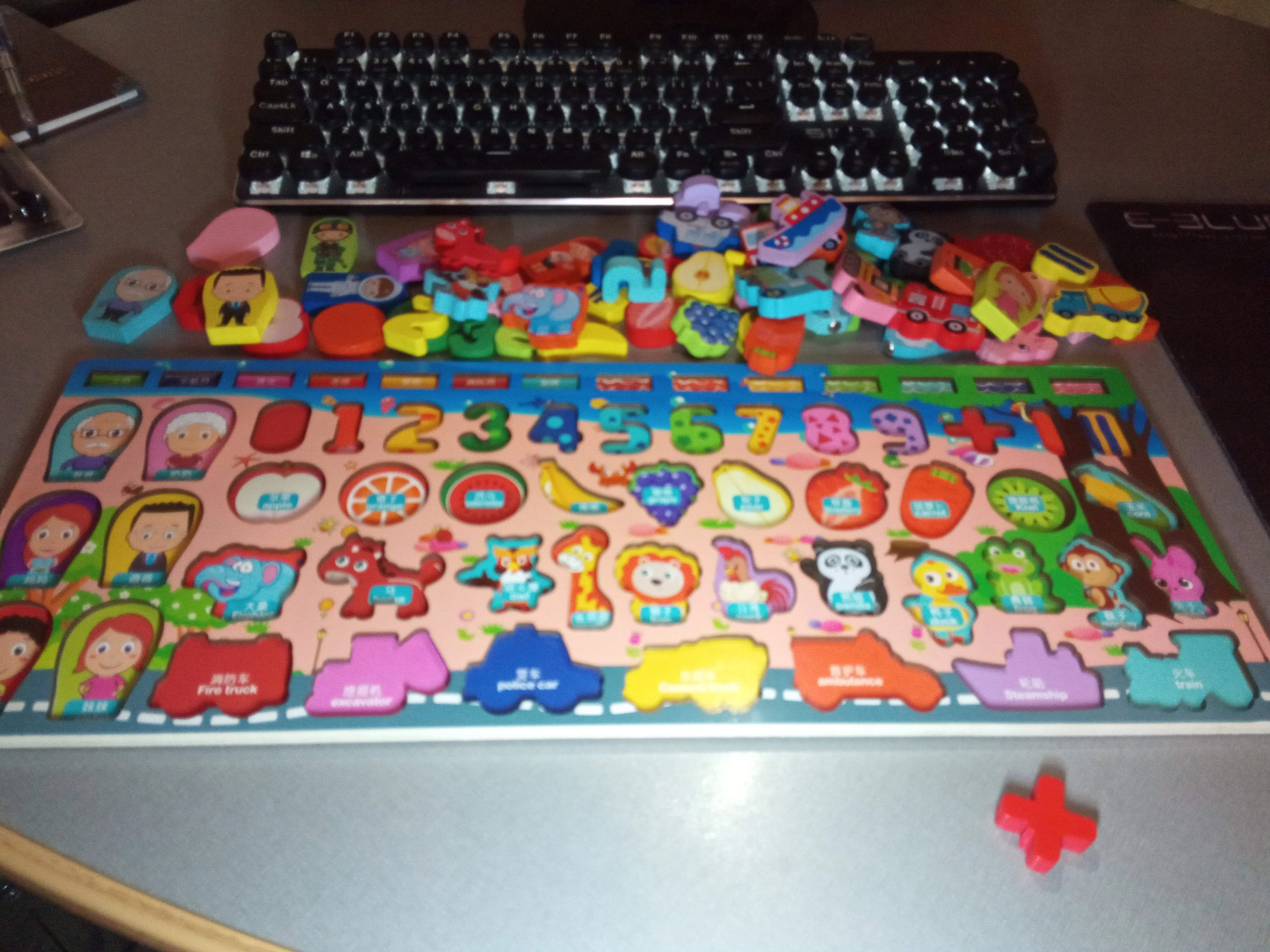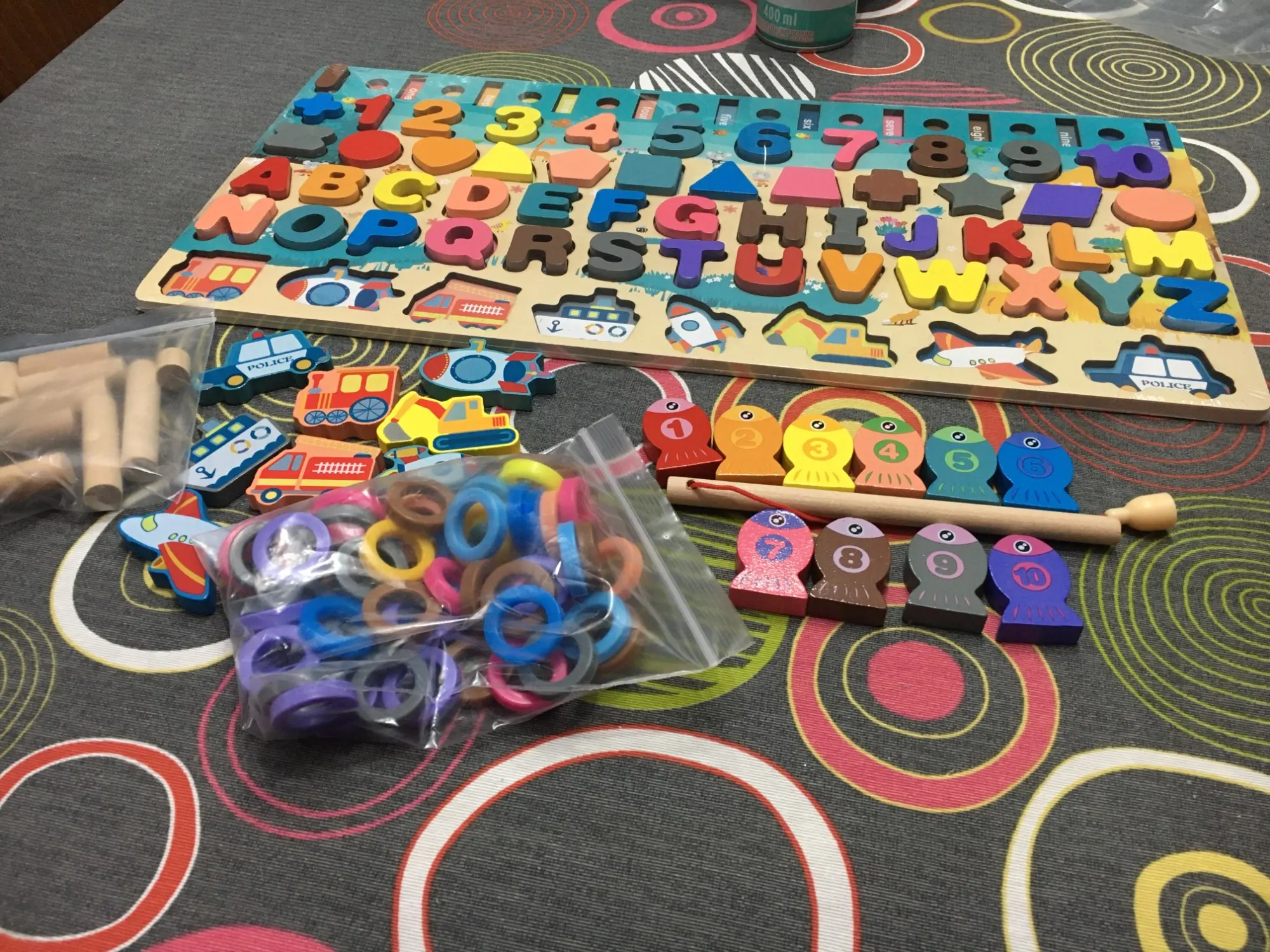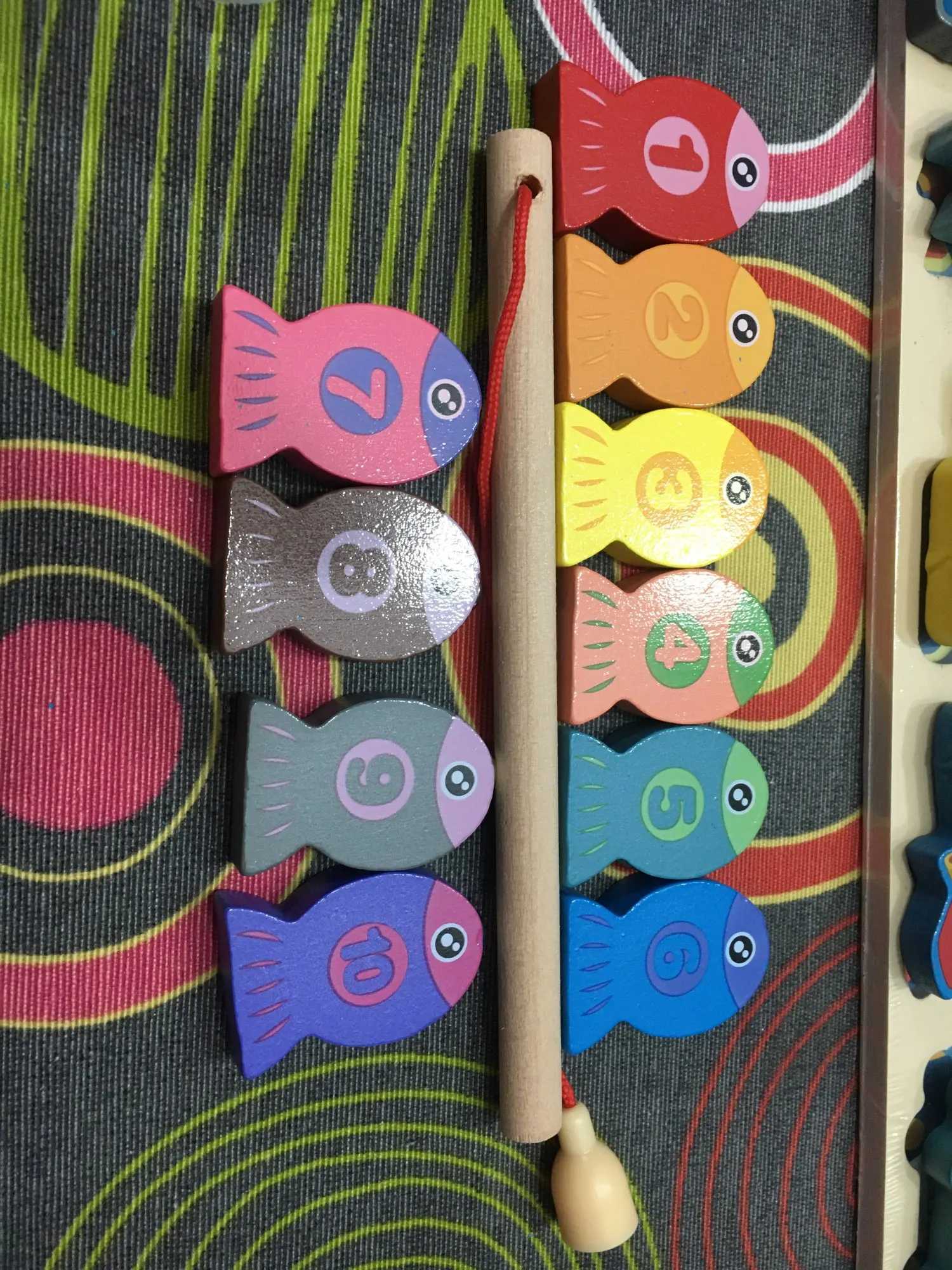 Отличная игрушка. Мой 2-летний мальчик немного слишком мал для букв, но животные, формы, цифры, рыбалка и сортировка колец-отличная работа. Сегодня он хотел омить завтраки, потому что хотел играть. Качество игрушки хорошее.