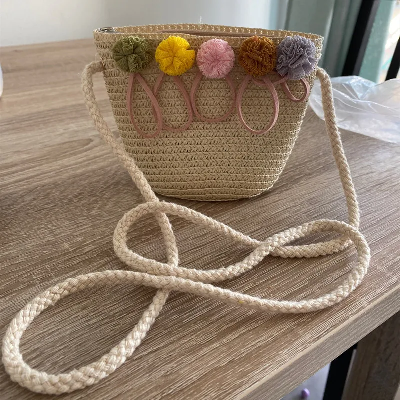 Детская мини-сумка через плечо, Детская плетеная сумка, сумки-мессенджеры для девочек, летняя Соломенная пляжная сумка ручной работы, сумка из ротанга с цветочным рисунком