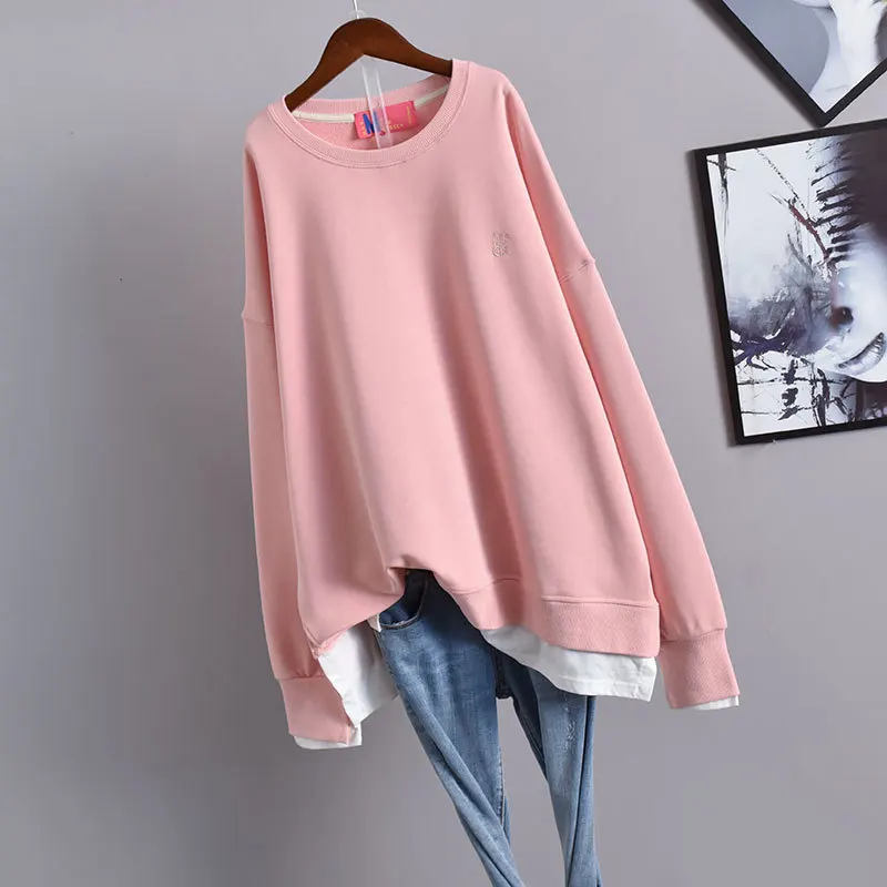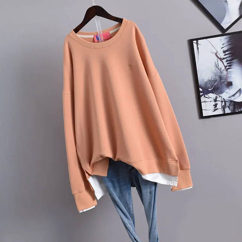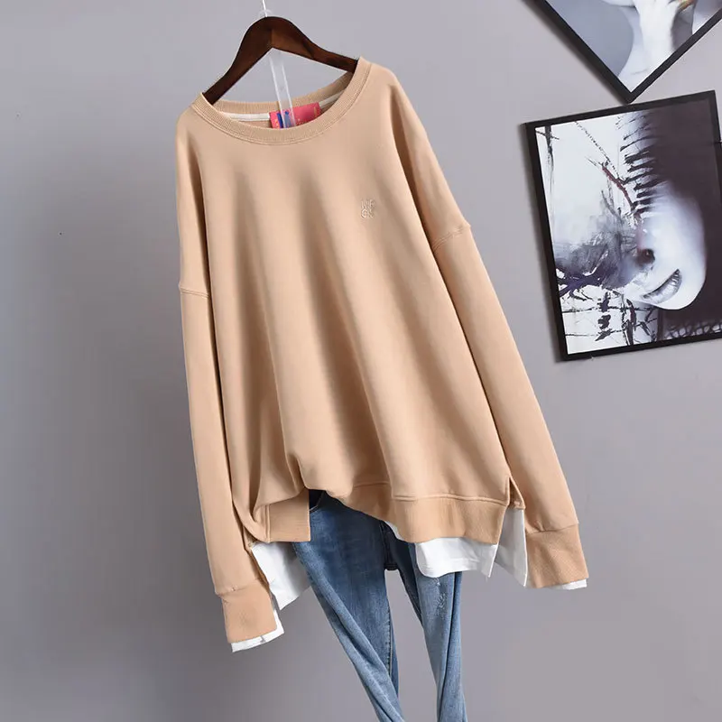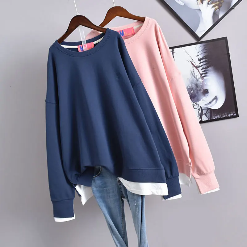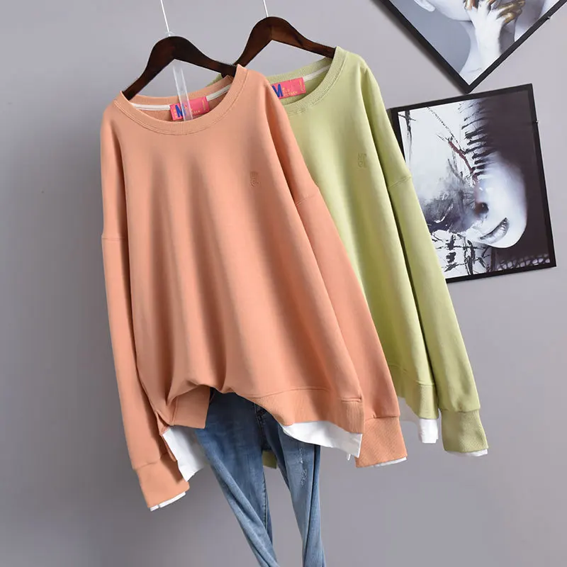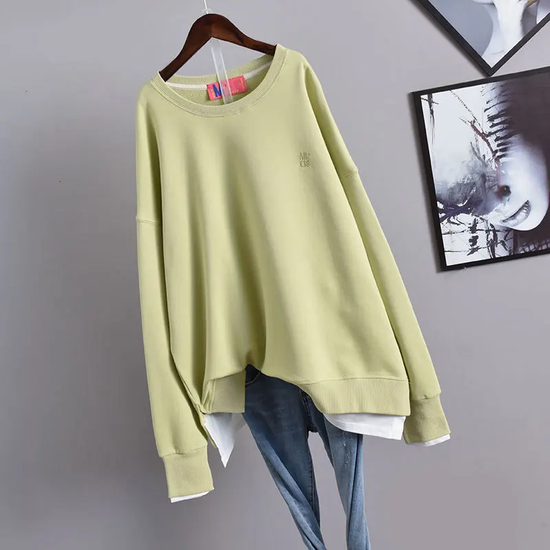 Новинка весна-осень 2022, корейский женский простой однотонный модный свитер из двух частей с имитацией обманки, свободные приталенные повседневные топы для женщин, бесплатная доставка