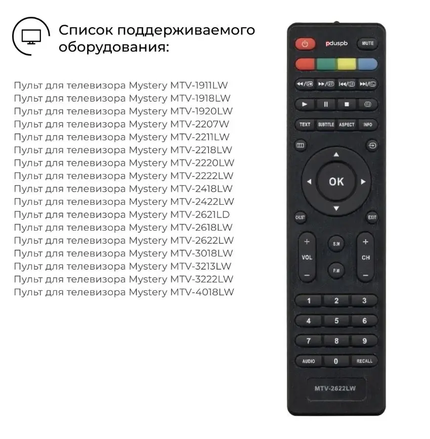 Внимание! Данный пульт НЕ универсальный. Он совместим только с телевизорами из списка поддерживаемого оборудования!Обращаем ваше внимание на то, что пульты PDUSPB имеют ряд преимуществ: