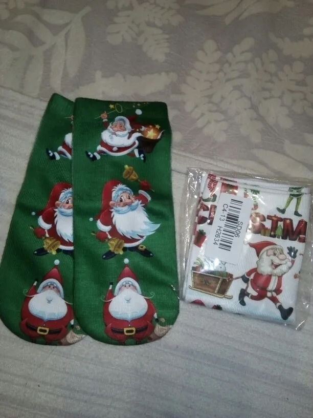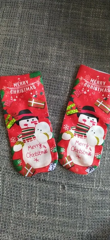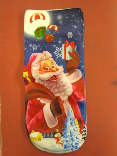 Носки конечно не ХБ. Но синтетика приятная на ощупь. Печать рисунка только на одной стороне, подошва белая. Хорошо тянутся. Подойдут на размер 34-38. НО это по сути одноразовые носки: после одного дня носки все сватались :(( На Новогоднюю ночь