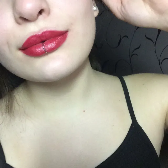 Если у вас довольно пышные губы, даже 10 мм вам будет мало. Сначала я хотела заказать 8 мм, но, почитав отзывы, решила взять 10. Слава богу я сделала это. Кольцо прикольное, чуть кривоватое, но это не мешает. Можно с такой штучкой замутить прикольные фотосессии.