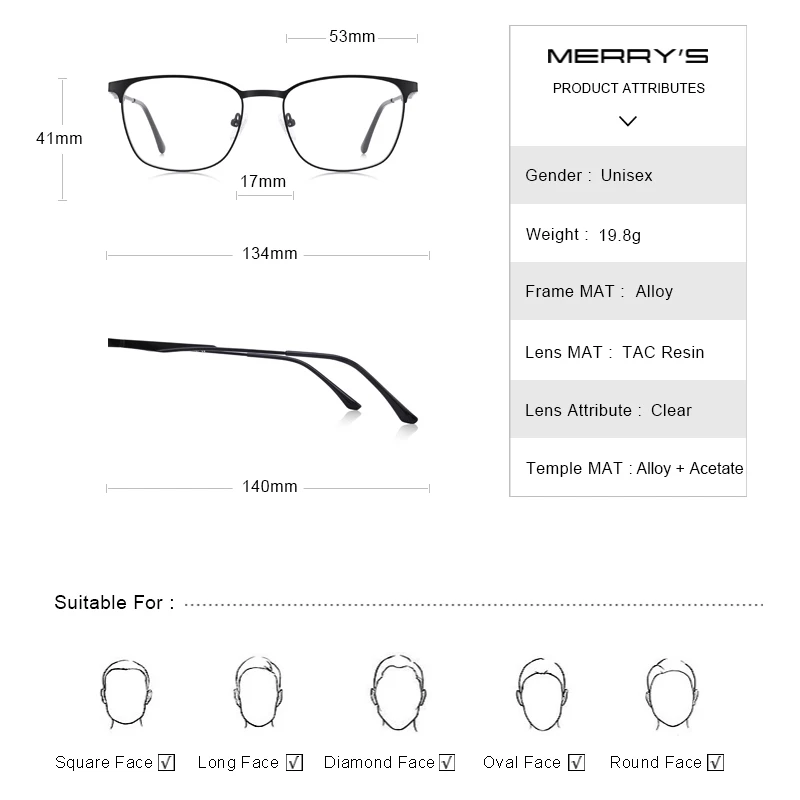 Мужские очки MERRYS, дизайнерские очки из сплава в деловом стиле , ...