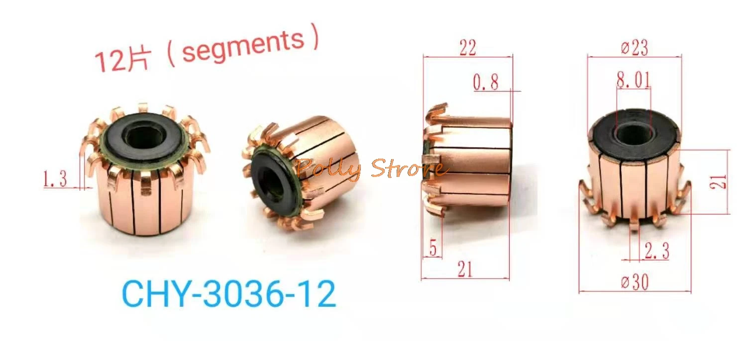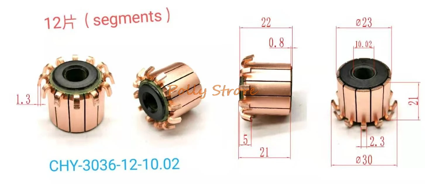 Коллектор электродвигателя переменного тока, 23x22(21) мм, медные стержни 12P, 5 шт., CHY-3036-12