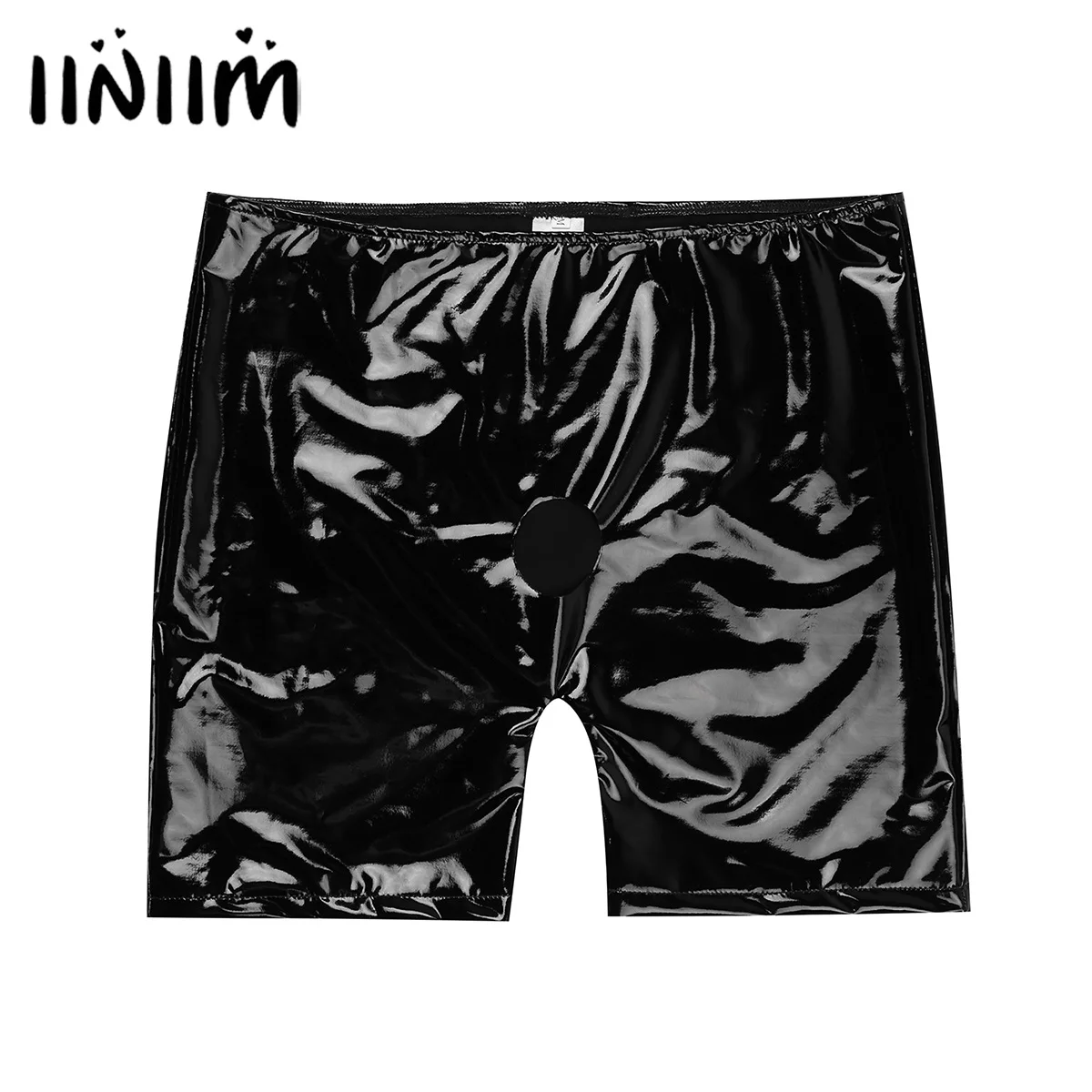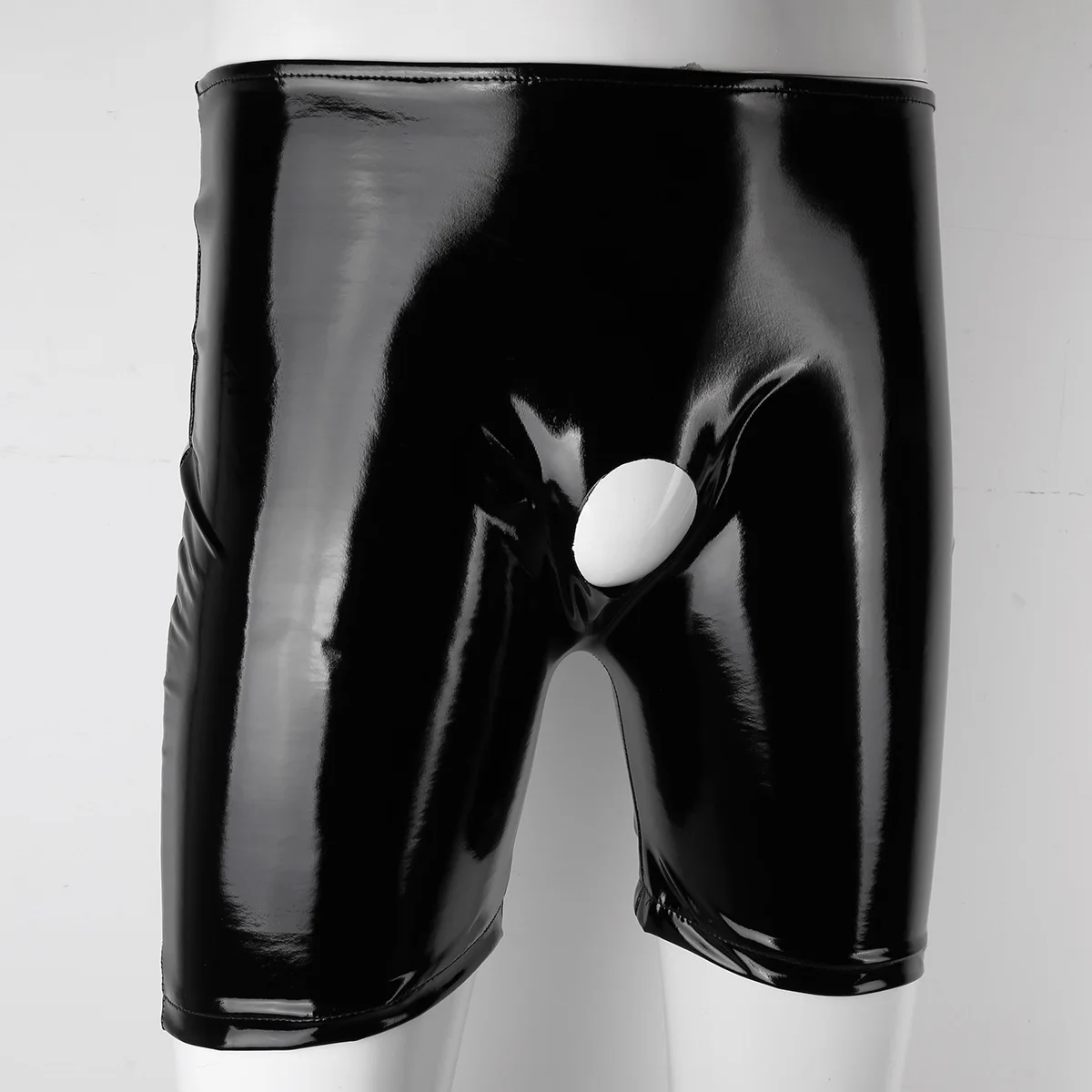 Мужское экзотическое нижнее белье, боксеры, шорты, сексуальное нижнее белье для геев, кожаное боди, латексное открытое с отверстием для пениса, трусы для коктейвечерние с гидроизолированным эффектом