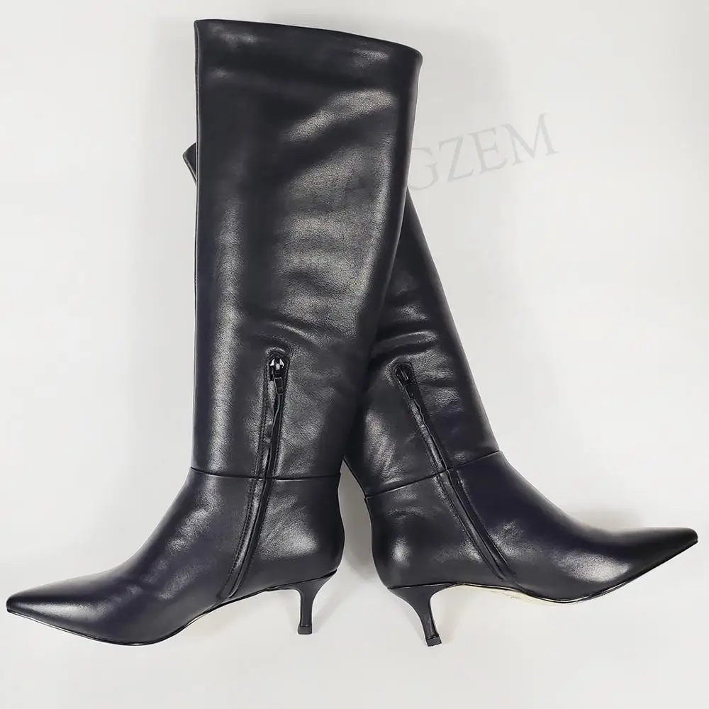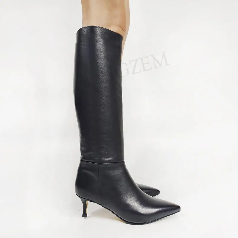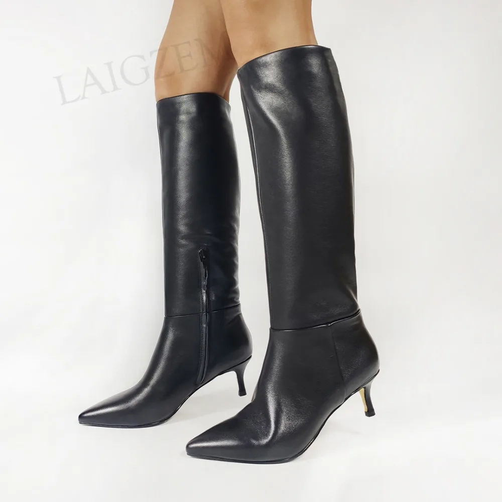 LAIGZEM/женские сапоги до колена; Сапоги из натуральной кожи на низком каблуке с боковой молнией; Мягкая женская обувь на шпильке; Женская обувь; Большие размеры 36, 37, 38, 39