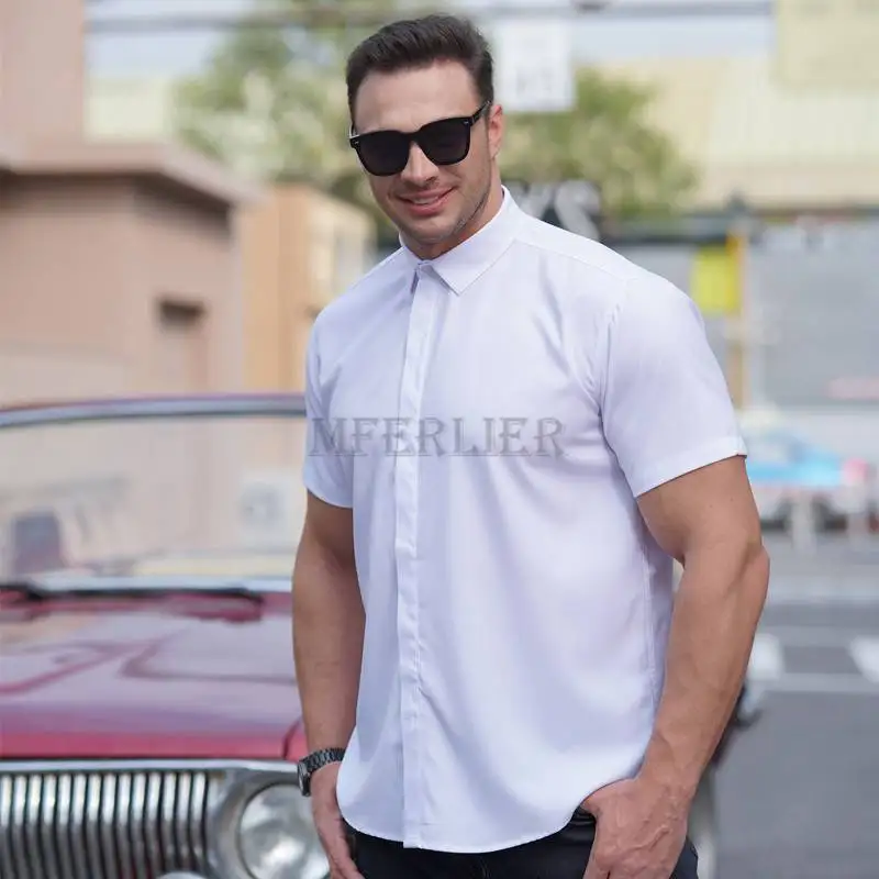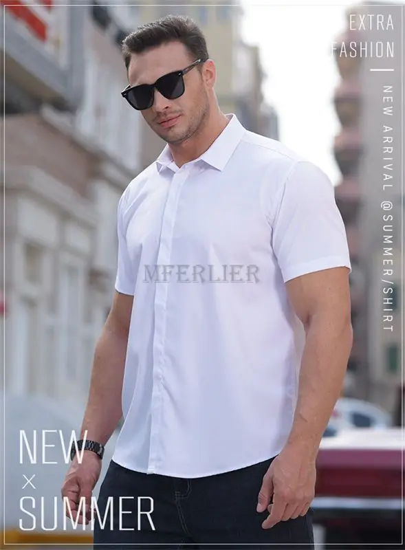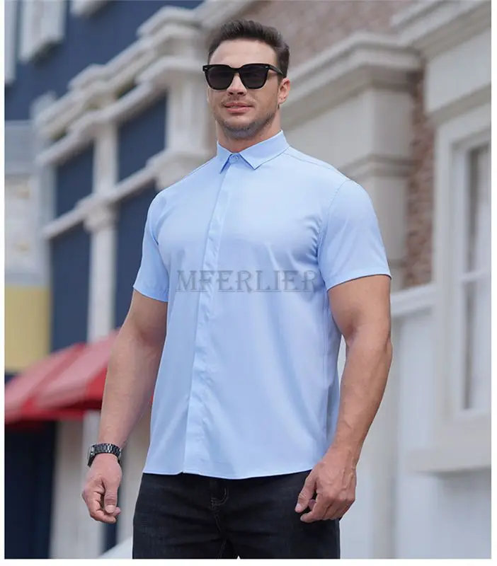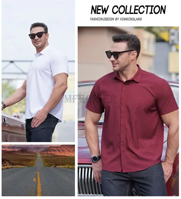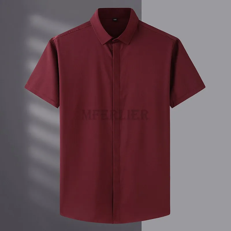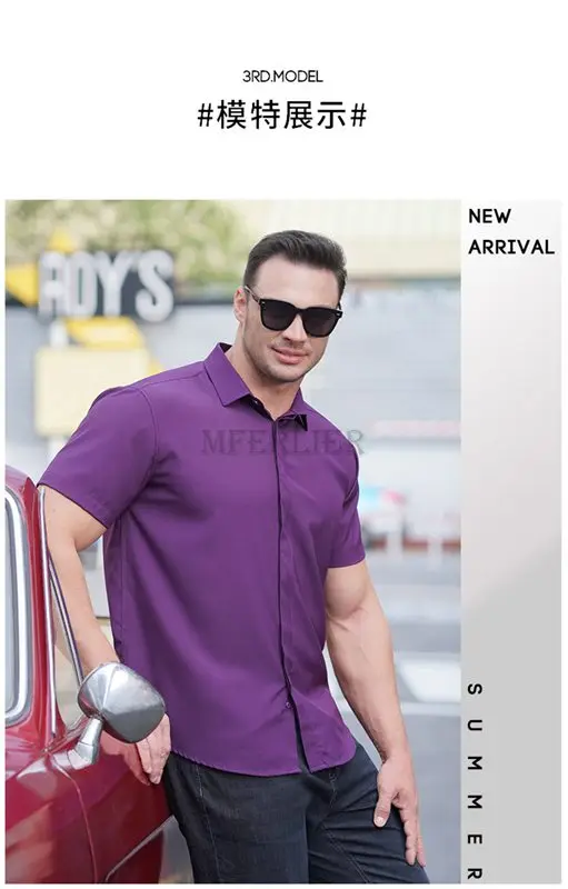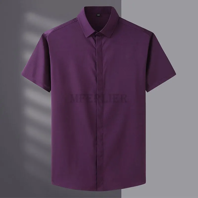 Блузка мужская оверсайз с коротким рукавом, свободная рубашка в повседневном стиле, официальная деловая фиолетовая, лето 10XL 12XL