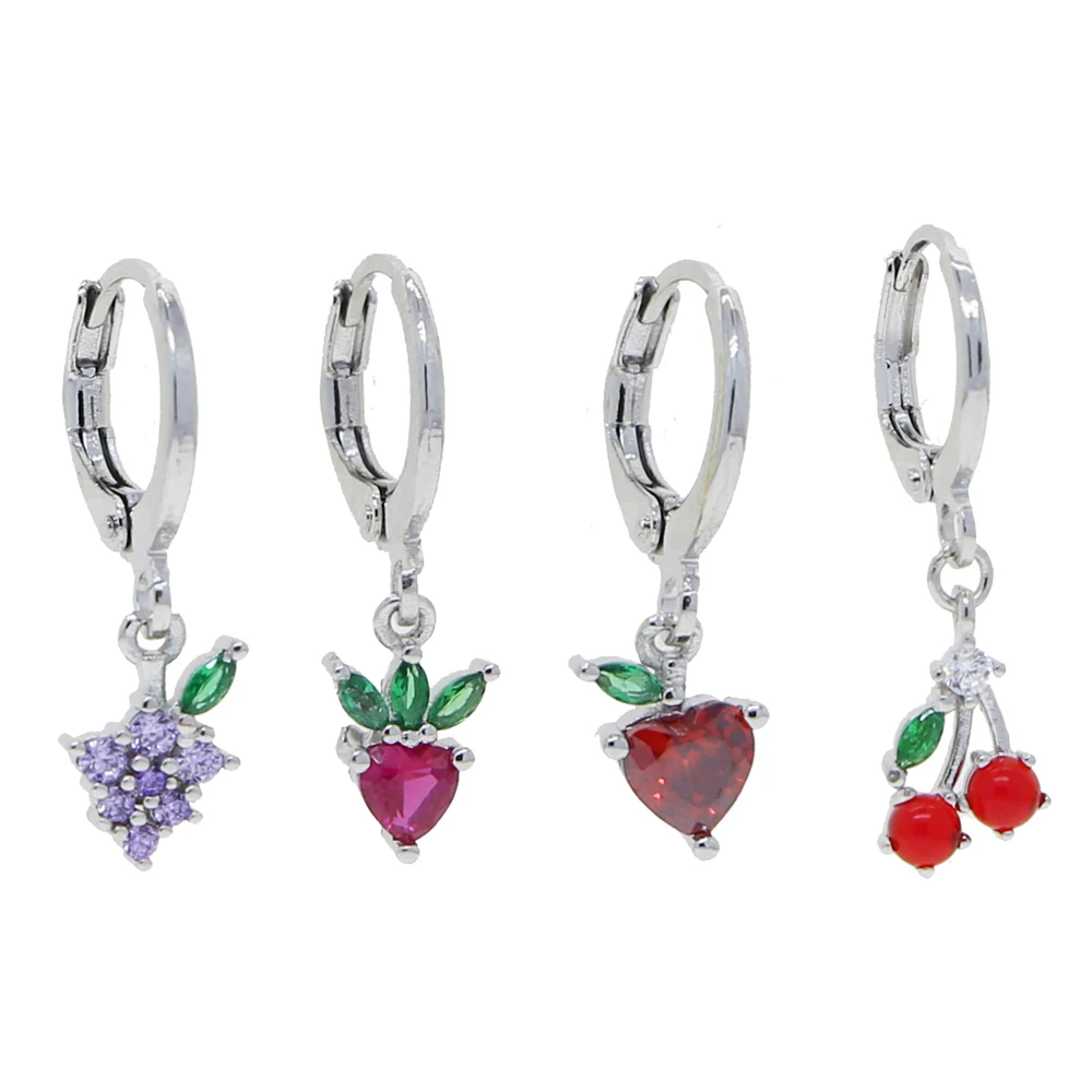 Очаровательные очаровательные женские серьги-кольца с фруктовым дизайном, очаровательные ювелирные изделия для девочек, очаровательные серьги с яблони, вишни, винограда, клубники, фруктов