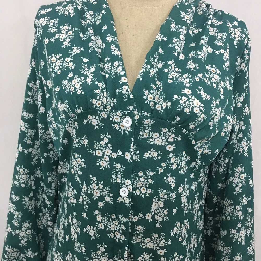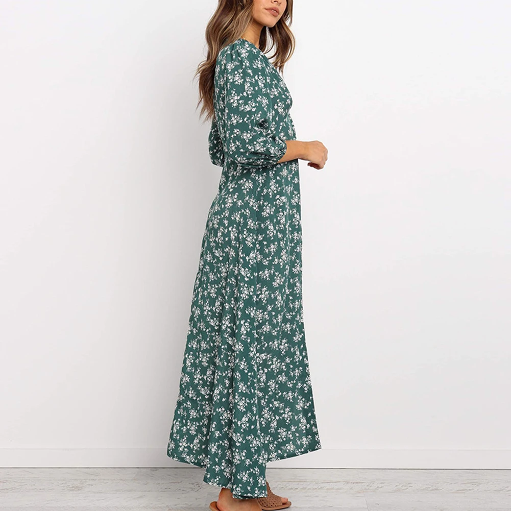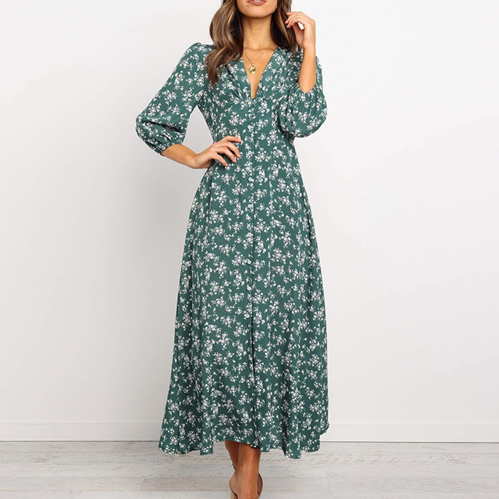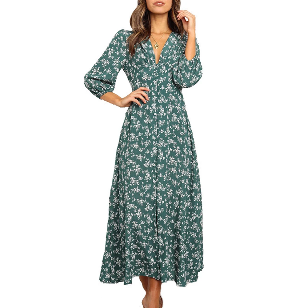 Платье женское шифоновое с цветочным принтом, элегантный осенний сарафан-трапеция с высокой талией и длинным рукавом, с V-образным вырезом