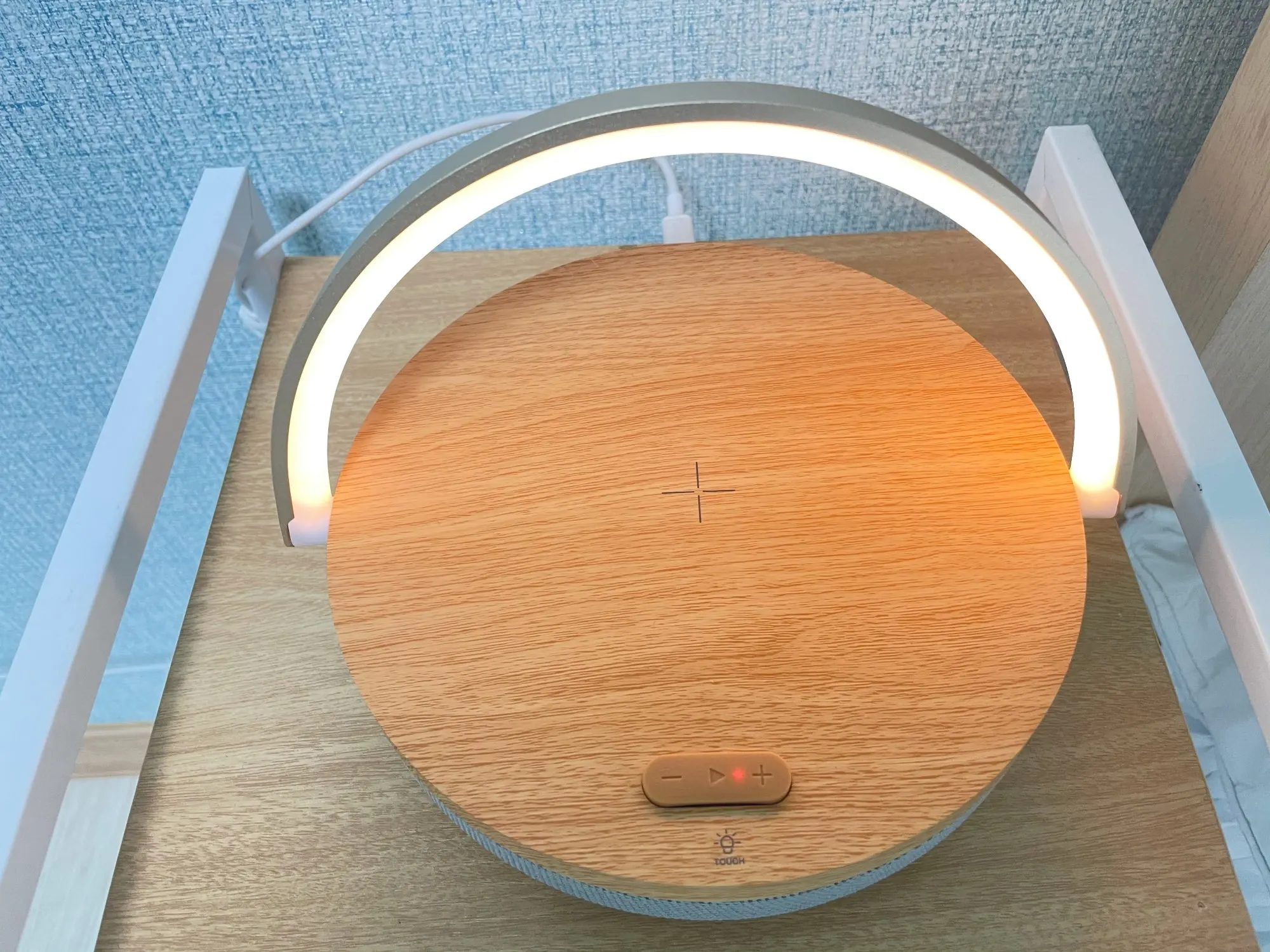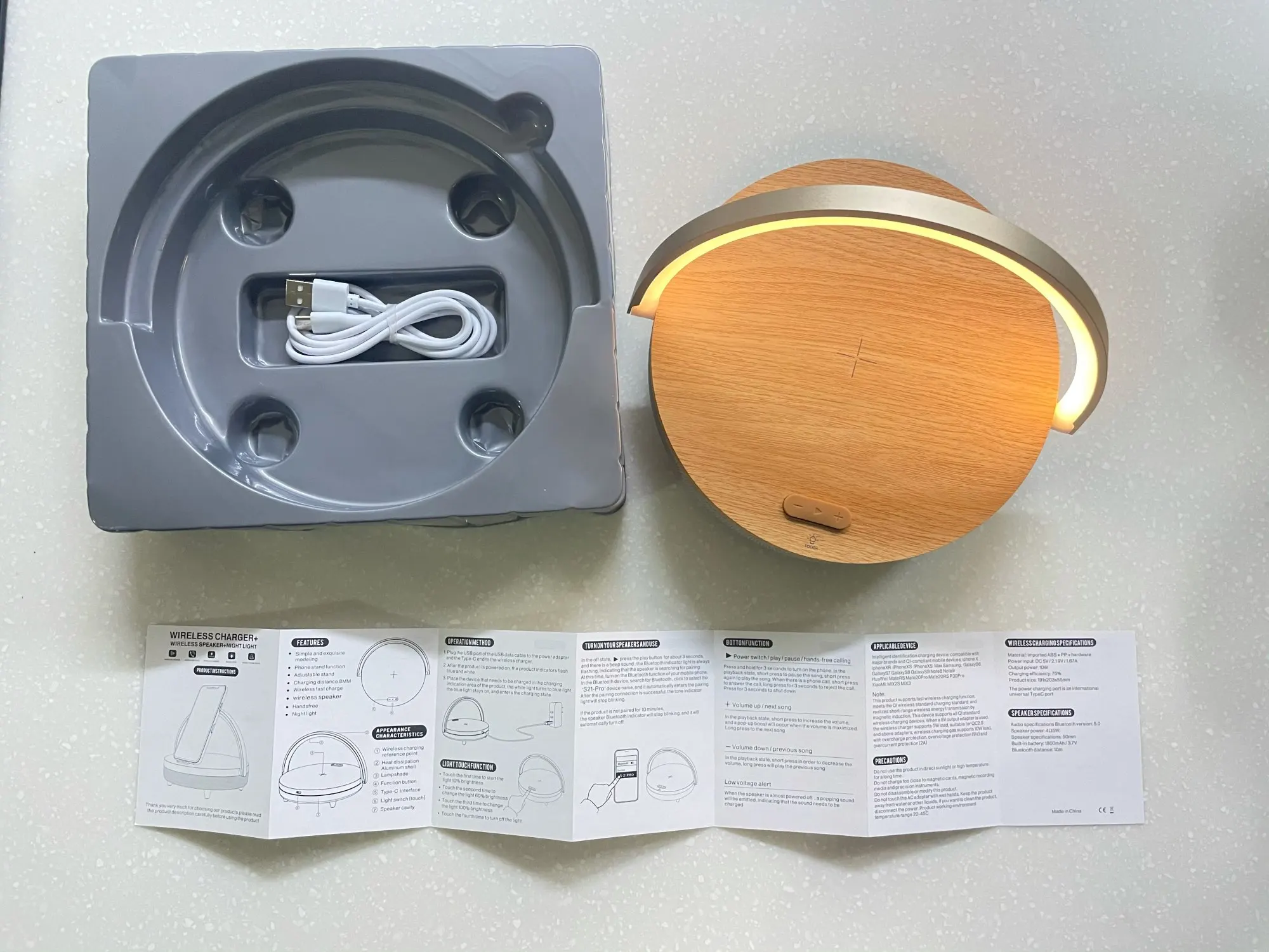 Воспроизведение Bluetooth можно подключить к bluetooth-динамику. Приобретено деревянное Беспроводное зарядное устройство. Текстура древесины очень красивая, поверхность гладкая и очень хорошая. Кроме того, теперь три цвета регулируются., глаза легко носить без нашего офиса и так далее