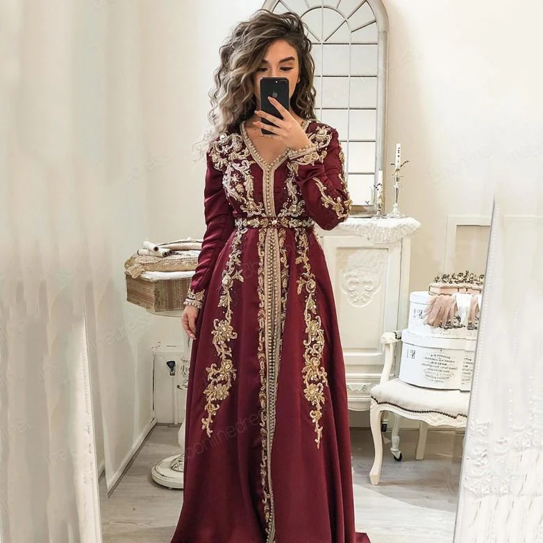 Бордовое марокканское платье-кафтан с длинным рукавом, отделанным бисером, платье с аппликацией, Абая для выпускного вечера, исламский Дубай, Саудовская Аравия арабский официальный вечерний