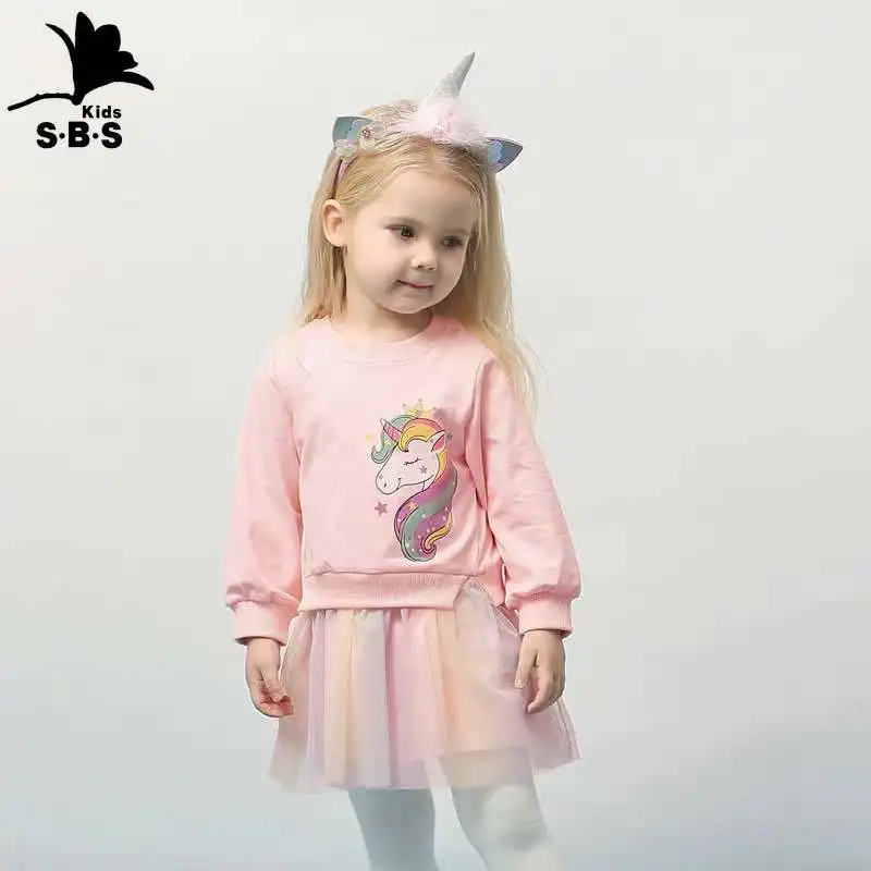 Детское Сетчатое платье для девочек с единорогом и длинным рукавом,...