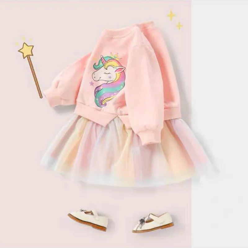 Осень 2020, платье для девочек с рождественским мультяшным единорогом, модный свитер с узором, Сетчатое Радужное Сетчатое платье принцессы