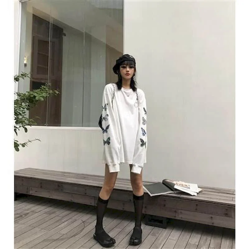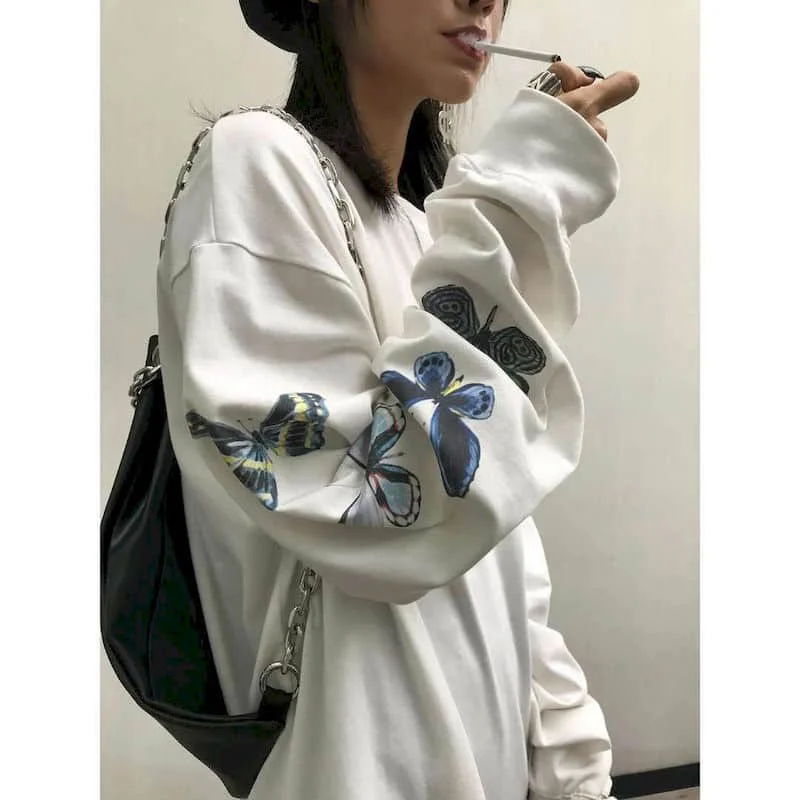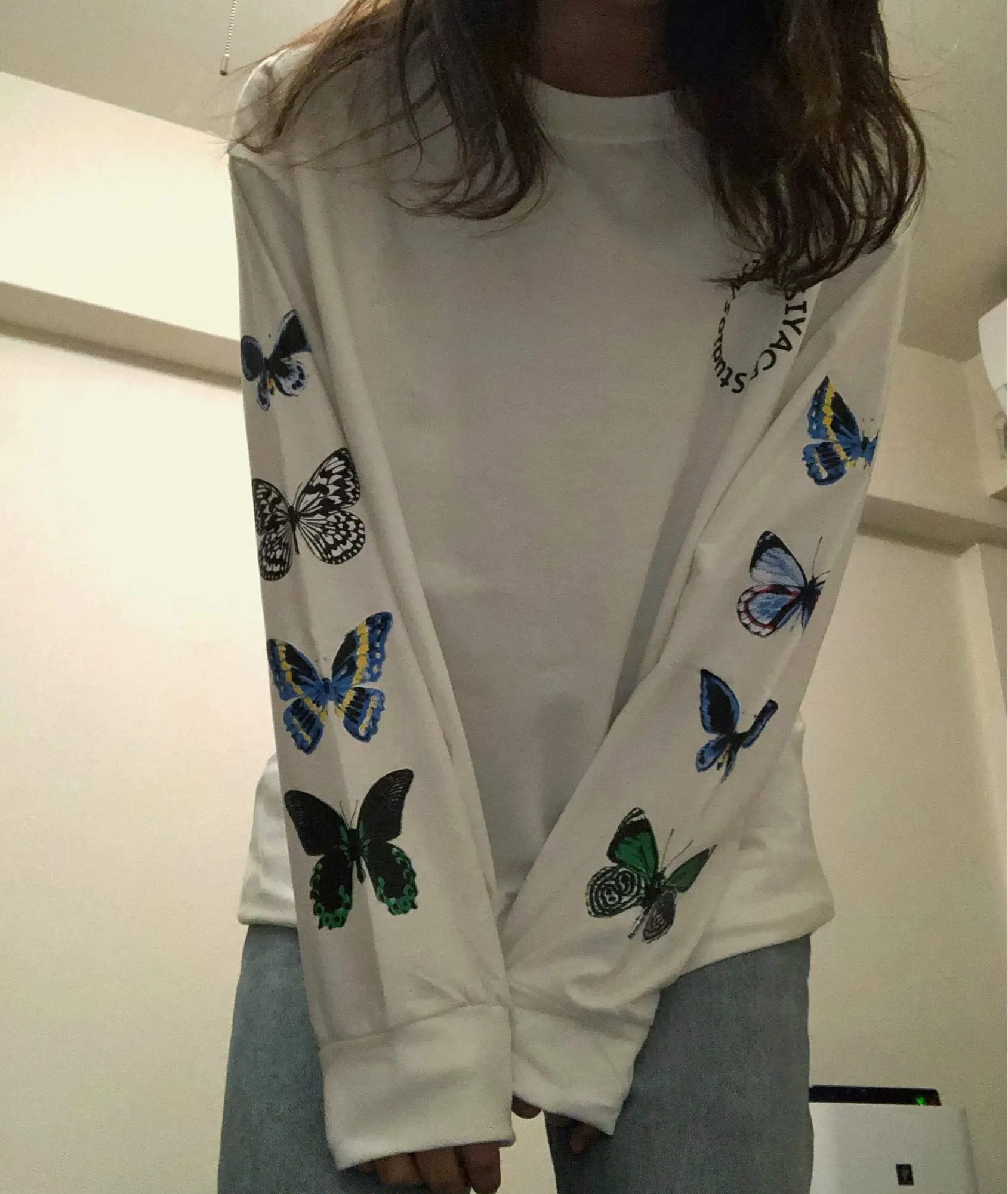 Женские футболки с длинным рукавом, женская футболка, Новинка осени 2022, Свободный Топ в стиле Харадзюку в стиле бойфренд с принтом бабочки для студентов в Корейском стиле