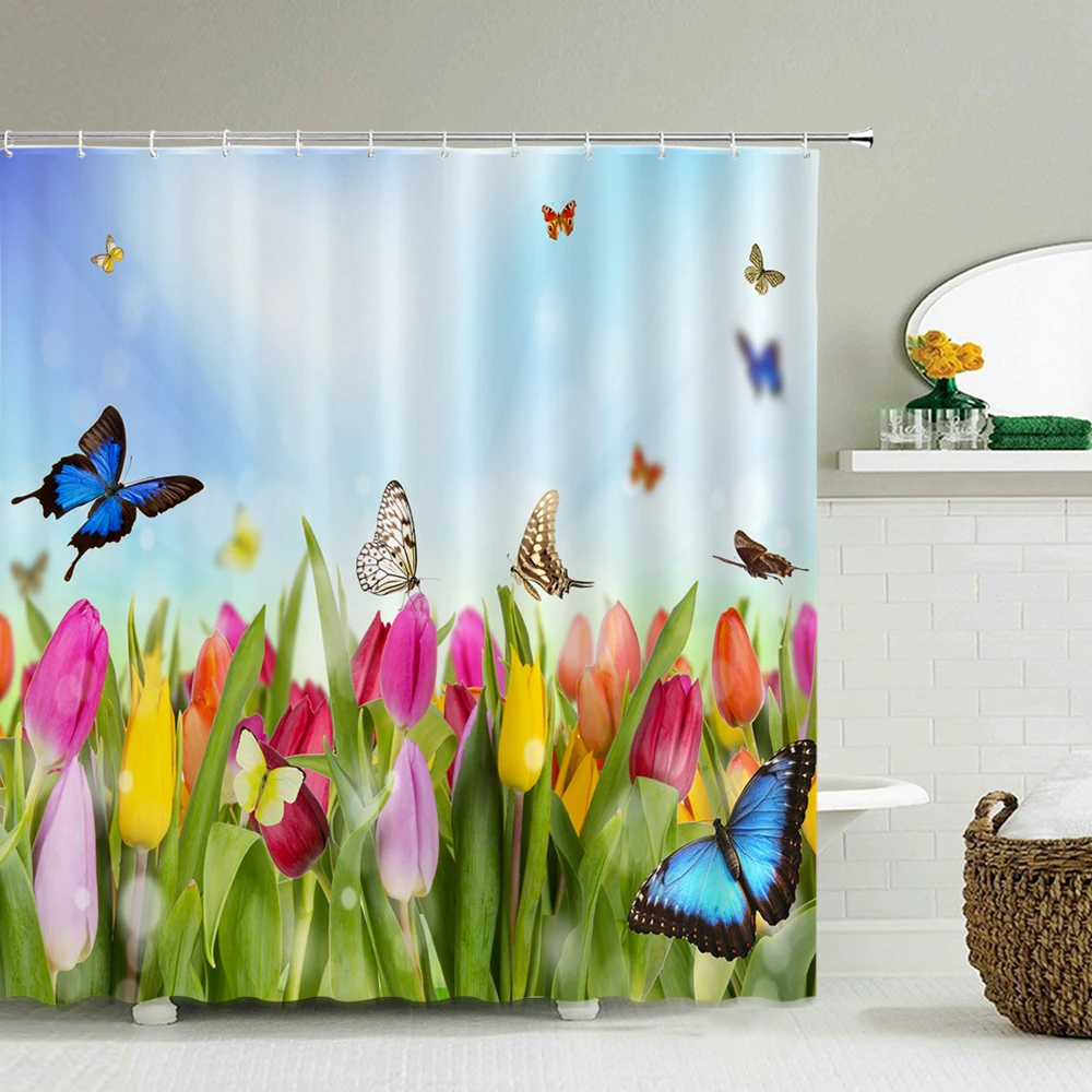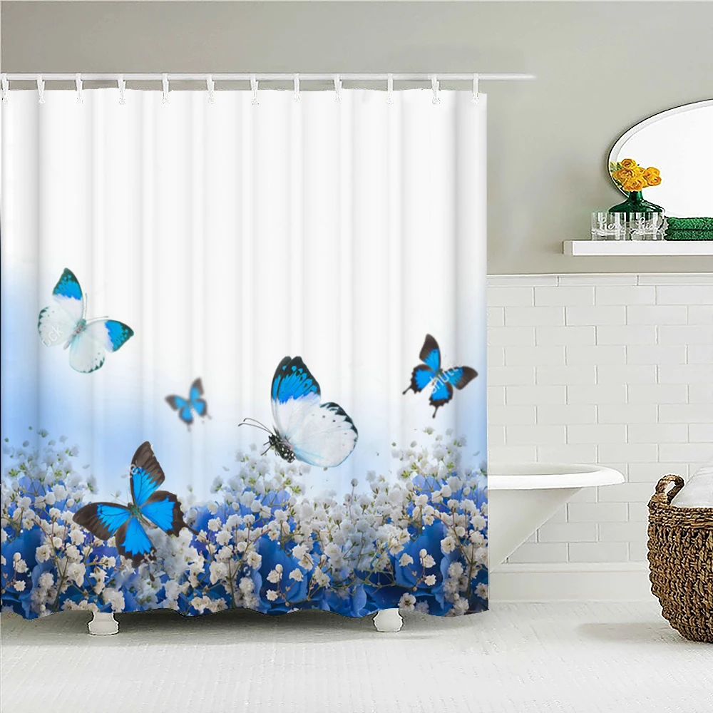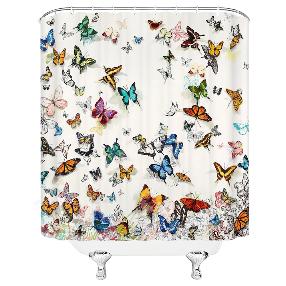 Красочные бабочки перья 3d занавески для душа занавески для ванной комнаты с крючками Водонепроницаемый 180x240 полиэстер ткань украшение экрана
