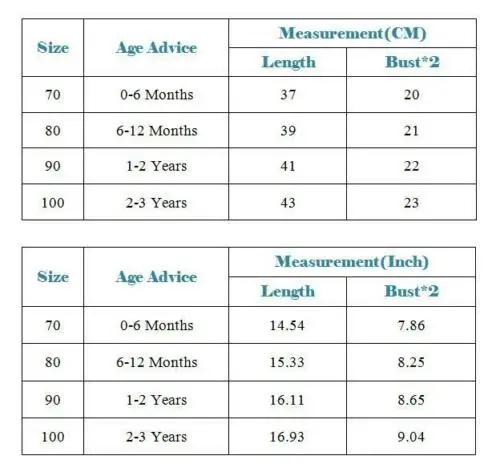 Внимание: если ваш ребенок пухлый, мы рекомендуем выбрать больший размер, спасибо.