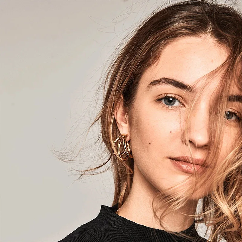 Золотые трехрядные круглые серьги-кольца, серьги в форме с, минимал...