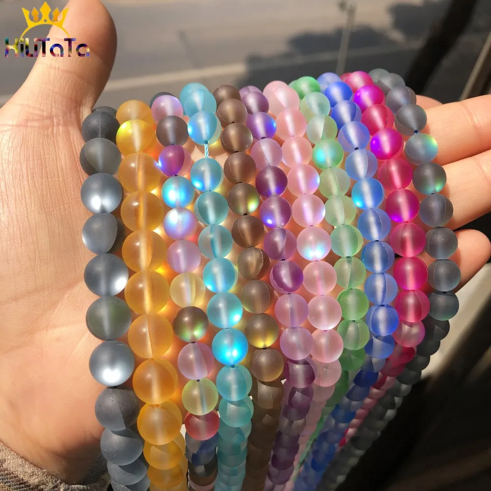 Матовые мерцающие бусины с блестками, круглые бусины с блестками из лунного камня для изготовления ювелирных изделий своими руками, аксессуары для браслетов 15 дюймов
