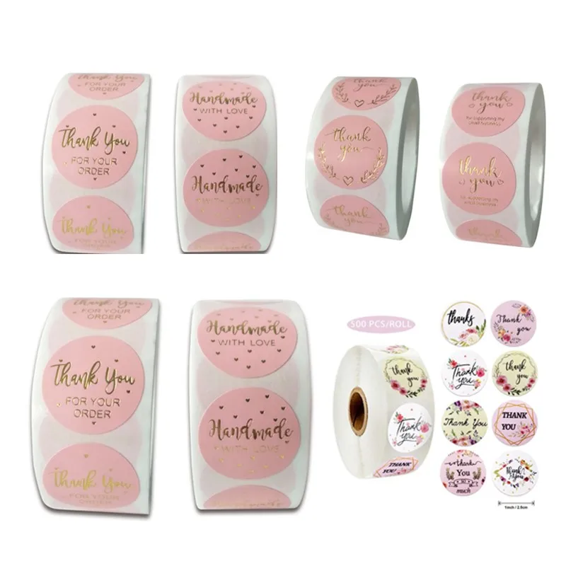 500 шт.лот розовые круглые Спасибо наклейки герметичные этикетки пищевые наклейки ручная работа канцелярские принадлежности для поддержки моего малого бизнеса
