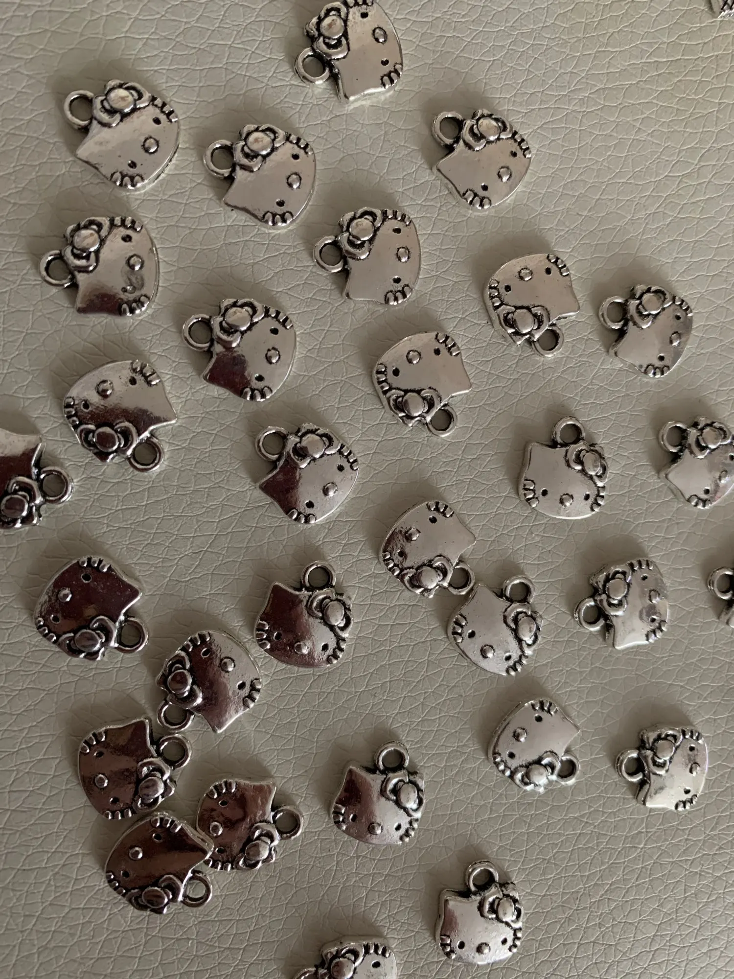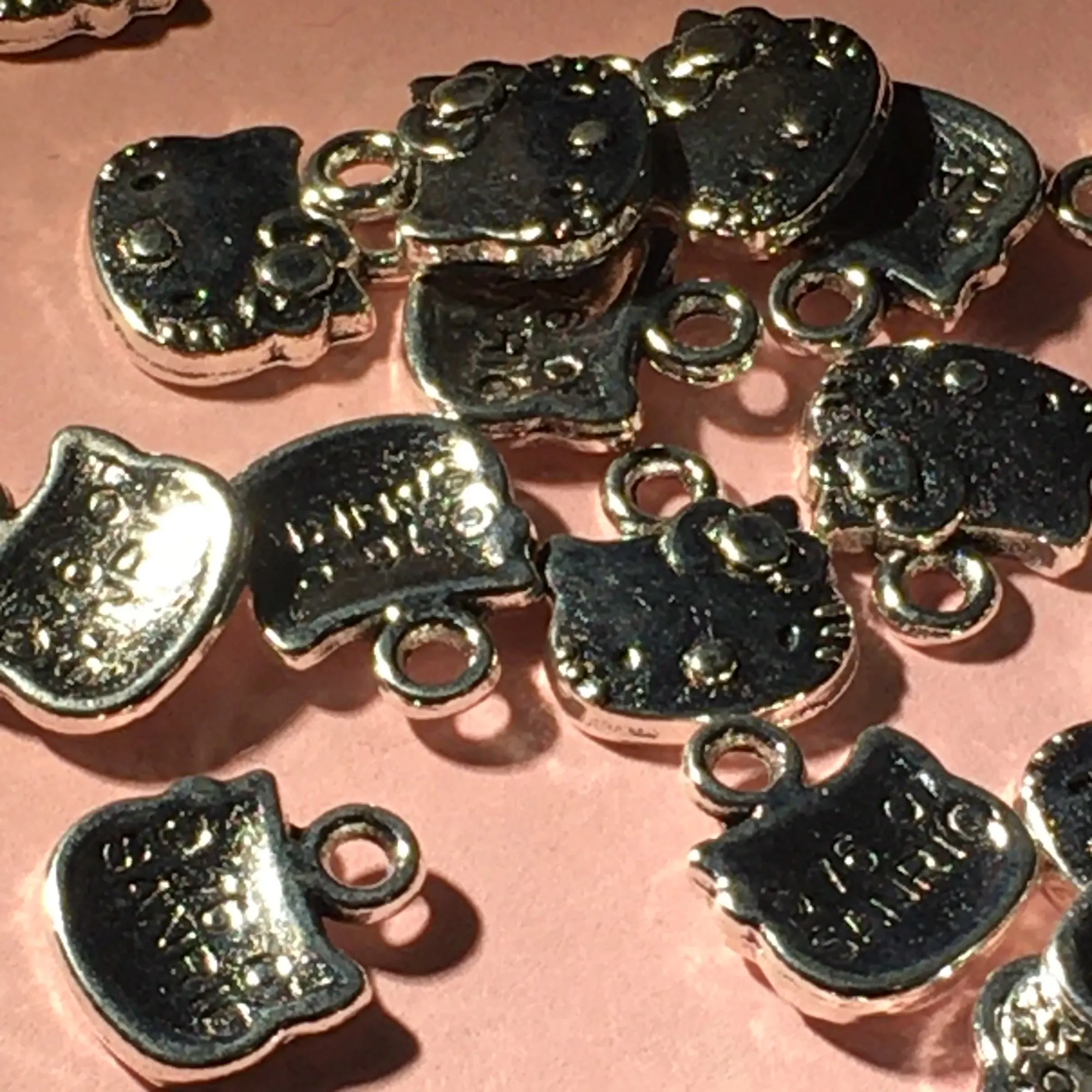 Посеребренные милые серьги-подвески в виде кошек, для браслетов, ювелирное ремесло, 13 х12 мм, A2265, 30 шт.