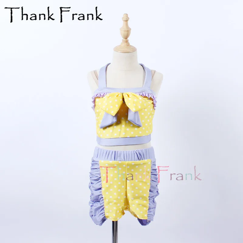 Новинка, комплект из 2 предметов, костюм для джаза для девочек, детские костюмы в горошек, современные танцевальные костюмы для женщин и взрослых, желтая Милая танцевальная одежда для выступлений