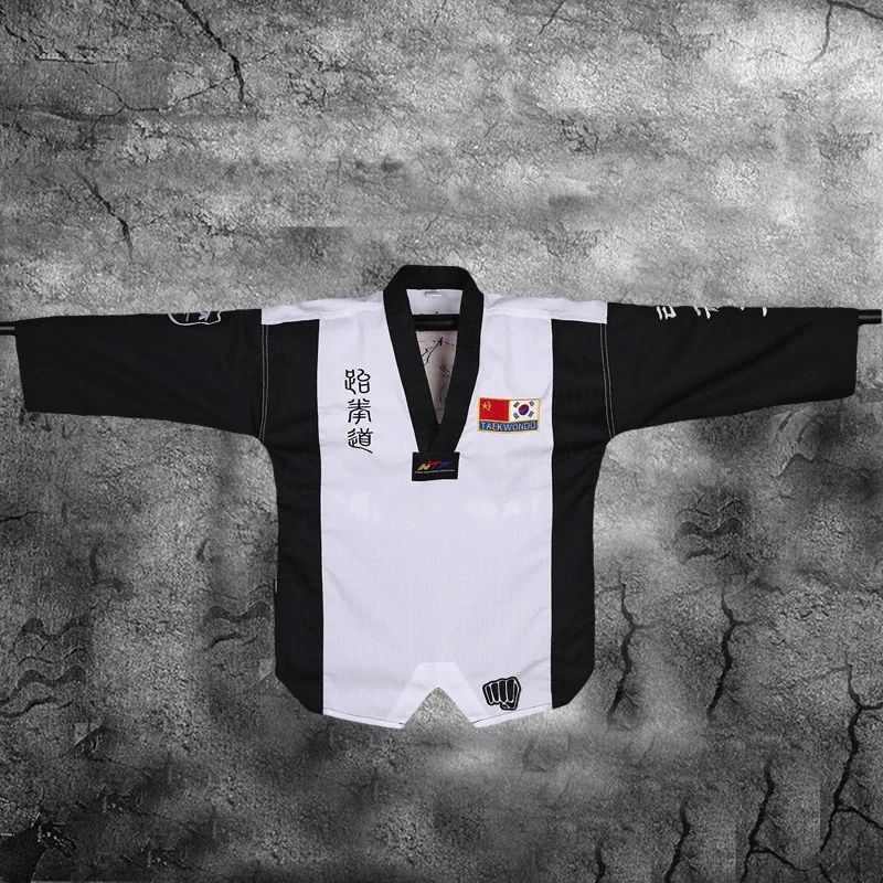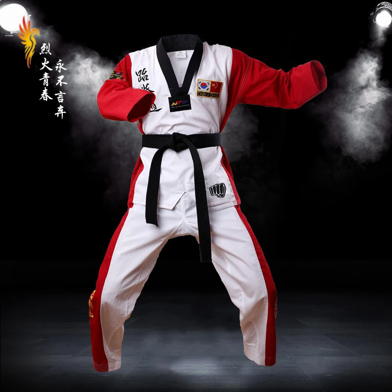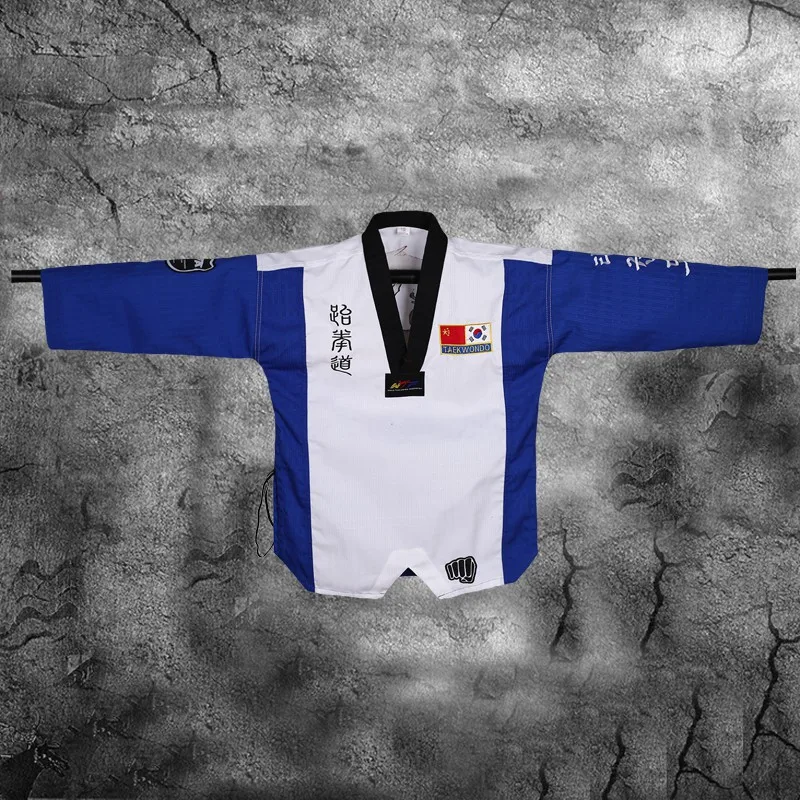 Униформа для тхэквондо, с V-образным вырезом, 3 цвета, для взрослых и детей, для подростков, TKD Poomsae, красный, синий, tae kwon do, черная одежда WTF
