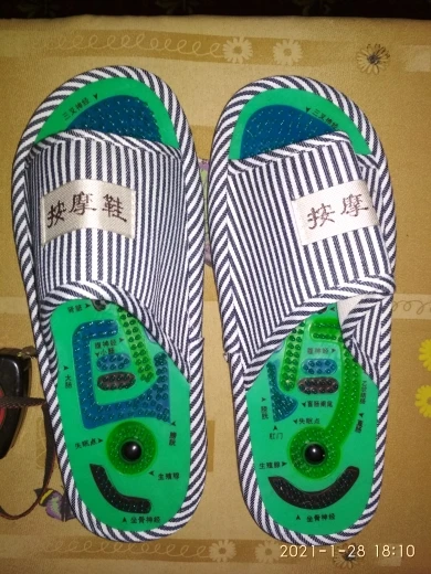 Посылка шла до Мск месяц. Объединили вместе с другим товаром. Тапки классные, только мне надо было брать размером больше. Немного маловаты, у меня длина стопы 25,5. либо пятка свисает, либо пальцы выпирают. А так массажный эффект хороший, есть еще два магнитика в каждом тапке. И два запасных. Тапки проклеены, прошивки нет. Поэтому сколько продержаться трудно сказать. Тем не менее товар и продавца рекомендую.