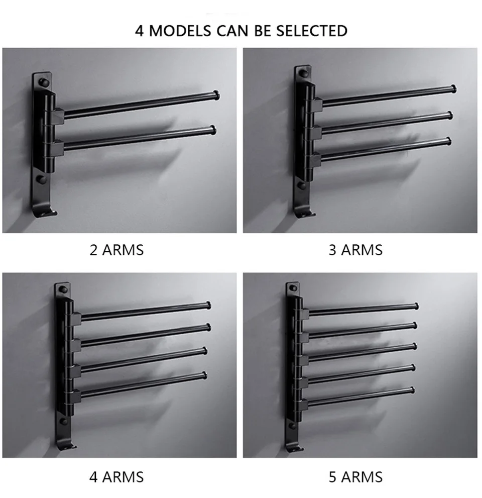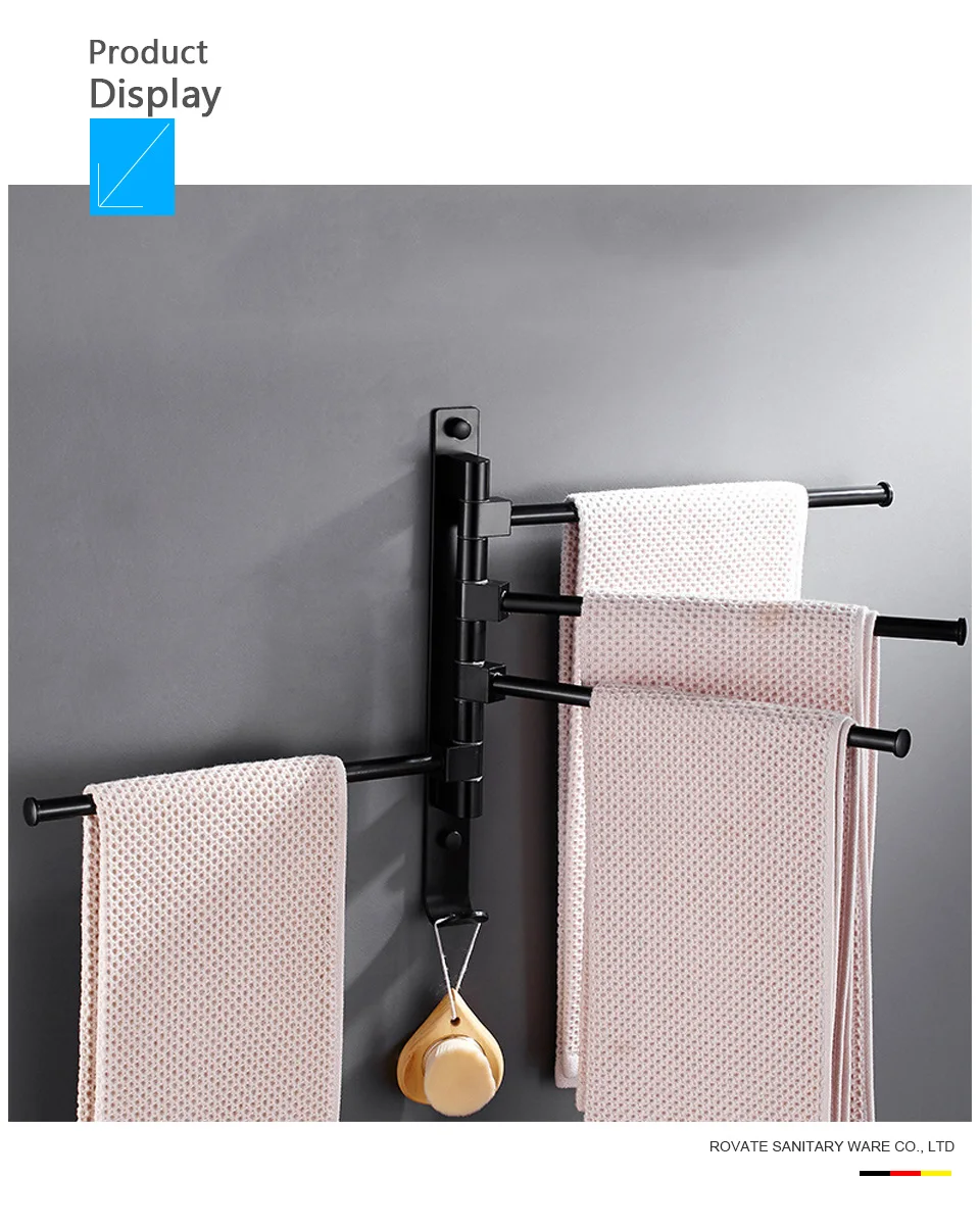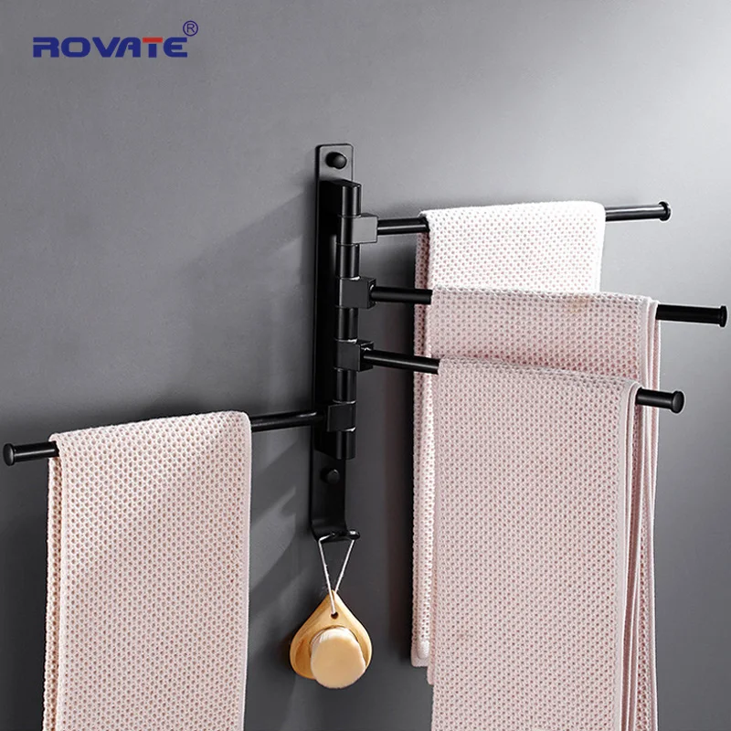 Вращающаяся вешалка для полотенец ROVATE на 2345 дюйма с крючками для полотенец, Черная Вешалка для ванной комнаты, вешалка для полотенец, Компактный настенный держатель