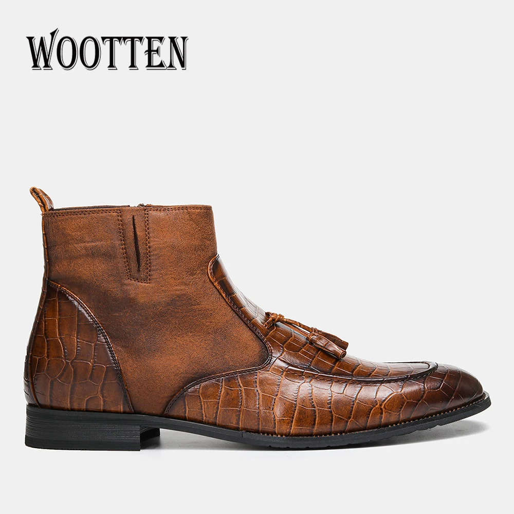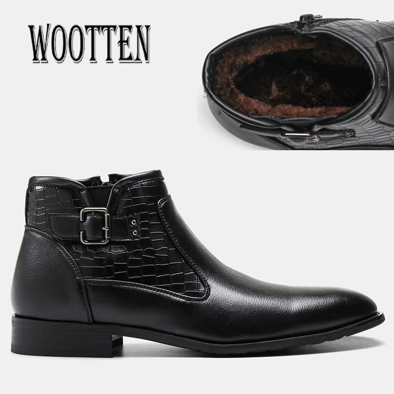 Брендовые зимние ботинки WOOTTEN для мужчин, размеры 40-46, мужские ботинки, высококачественные зимние ботинки, мужские кожаные ботильоны # KD5283C1