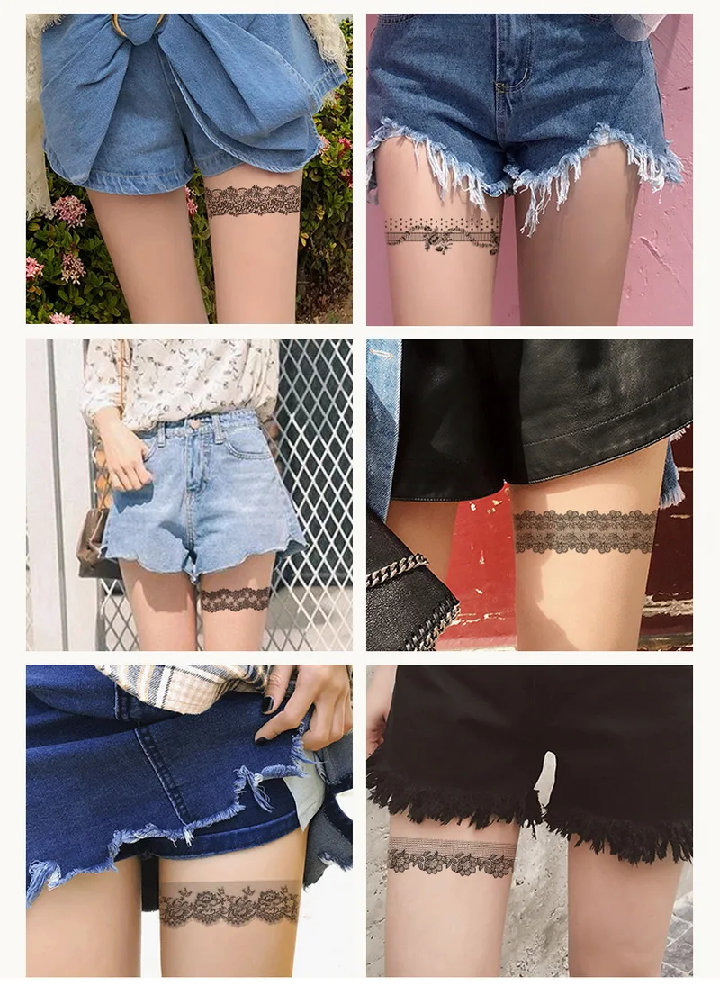 Сексуальная Татуировка для женщин и девушек, водостойкая временная татуировка, Черные искусственные чулки, тату, ноги до бедра, поддельные, большого размера для женщин