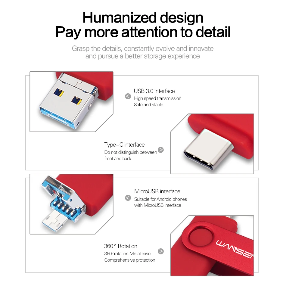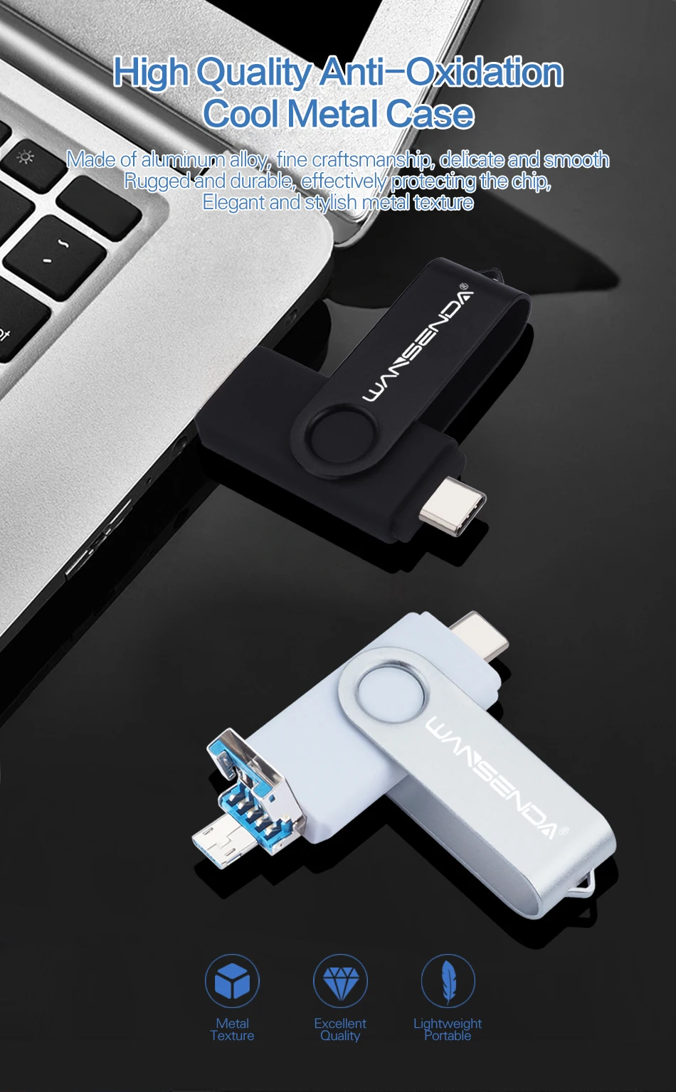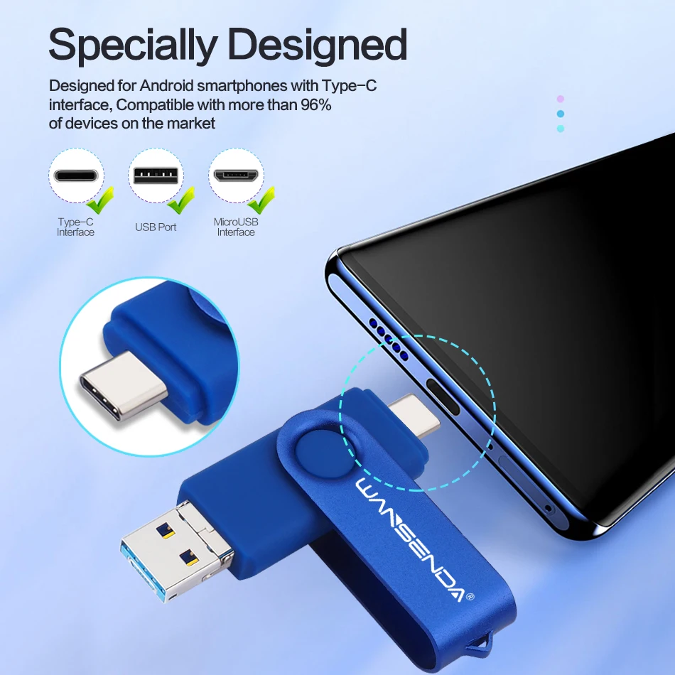 WANSENDA USB флеш-накопитель, 3 в 1, USB 3,0, Type C и Micro USB, 512 ГБ, 256 ГБ, 128 ГБ, 64 ГБ, 32 ГБ, 16 ГБ