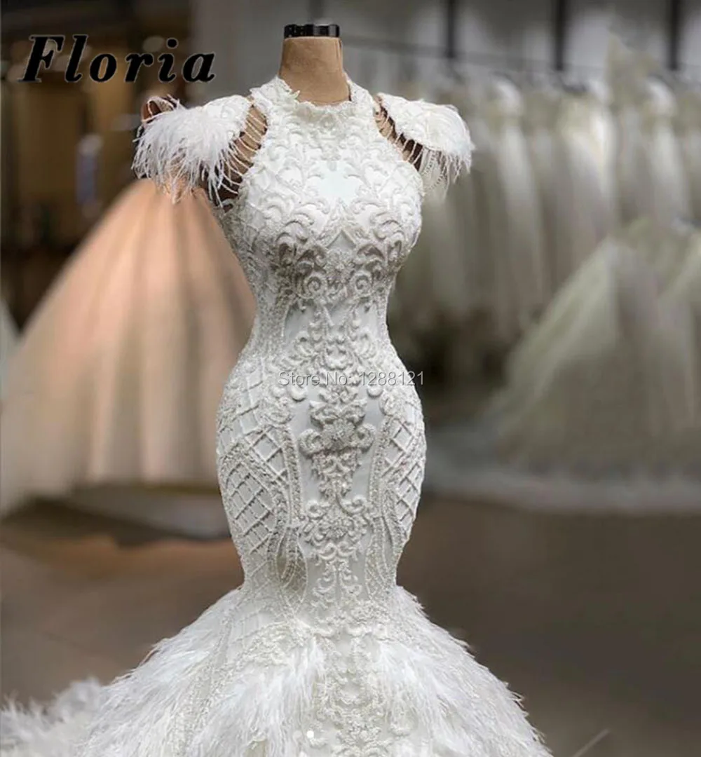 Роскошные свадебные платья перья 2020 Vestido De Noiva арабский Кружева Свадебные платья на заказ Дубай свадебное платье невесты Саудовская Аравия