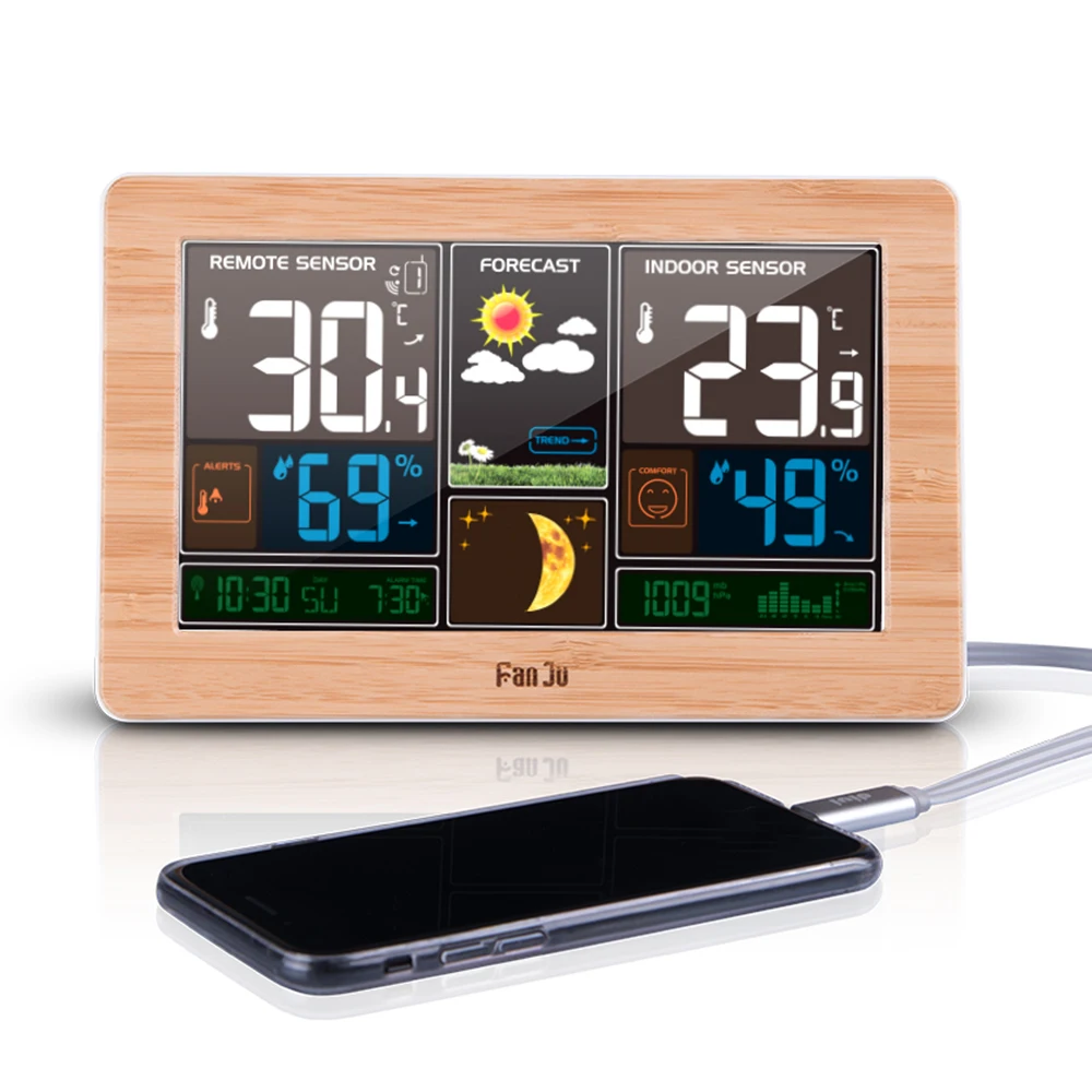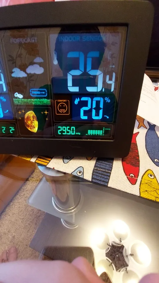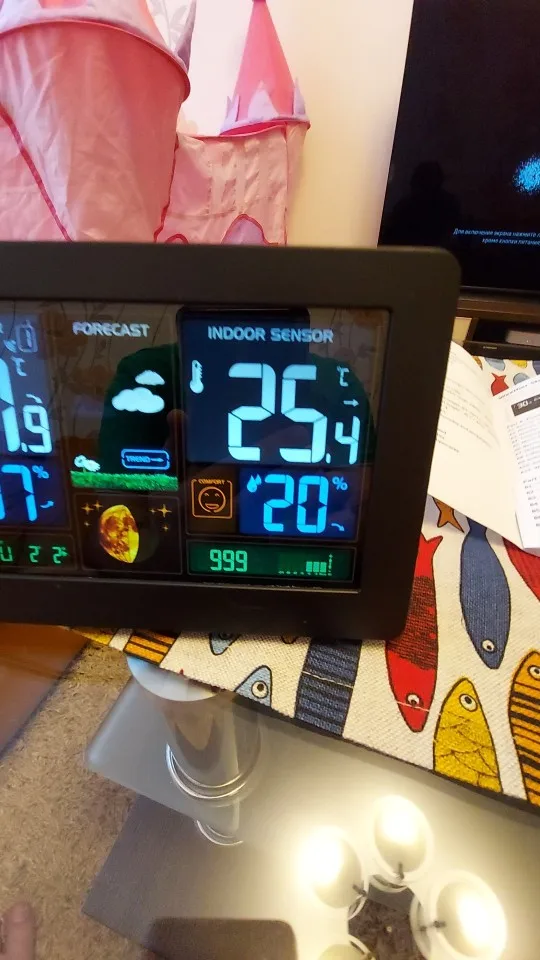 Товар доставлен очень быстро.Показания наружного датчика и метеостанции совпадают один в один.Температуру наружную и комнатную показывает достаточно точно.Если показывает например - 3,8, то может 3 десятых лишь неточность.В целом показывает наружную температуру получше интернета.Как ни странно.Фирма ( KKMOON ) которая выпустила эту метеостанцию, производит разные измерительные приборы, что немаловажно. Качество углов обзора метеостанции такое : С низу обзор плохенький.С верху или если прямо перед глазами хороший.С боков градусов на 45 может больше чуть - тоже хороший.Цветовая гамма достаточно яркая, контрастная и насыщенная.По влажности оценку дать не могу - нечем проверить.Атмосферное давление показывает хорошо.При настройке установите ( hpa ) это обозначение в гектопаскалях.