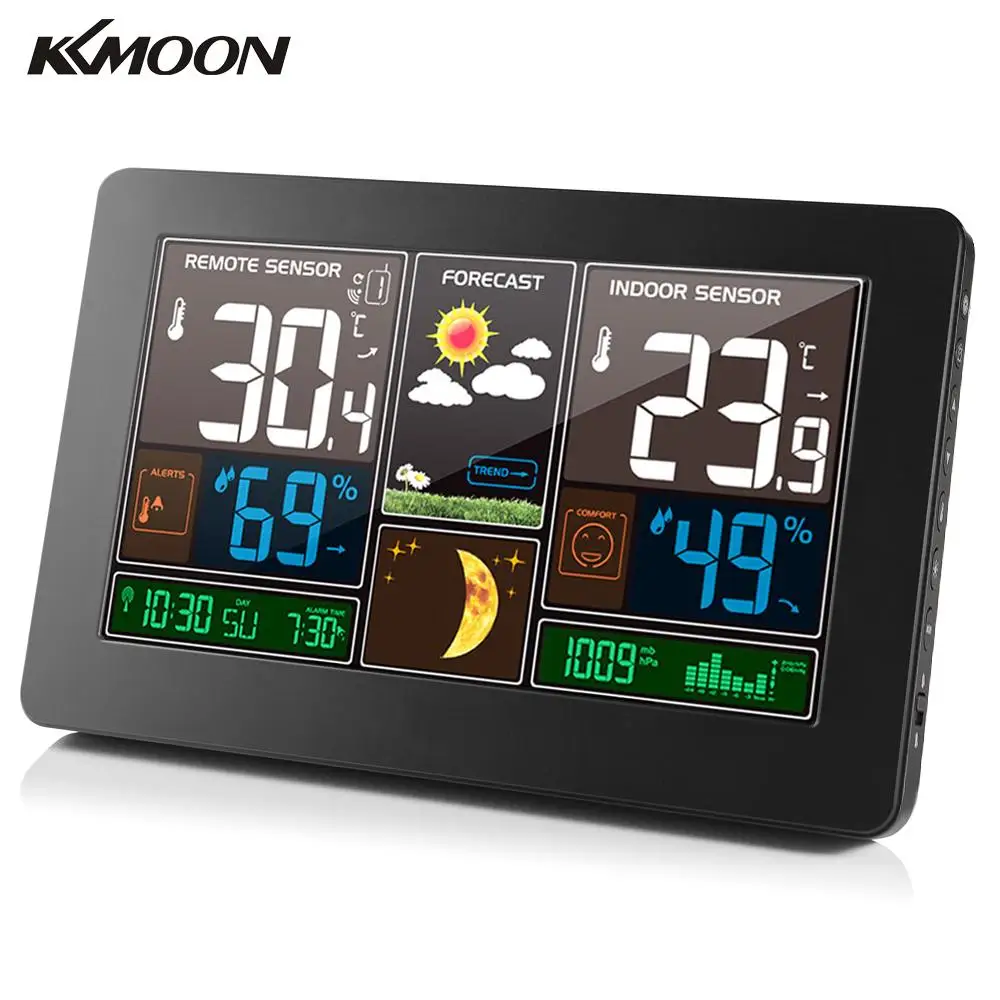 Метеостанция KKMOON Беспроводная 3-в-1, комнатная и наружная метеостанция с термометром, гигрометром, барометром, датчиком температуры воздуха