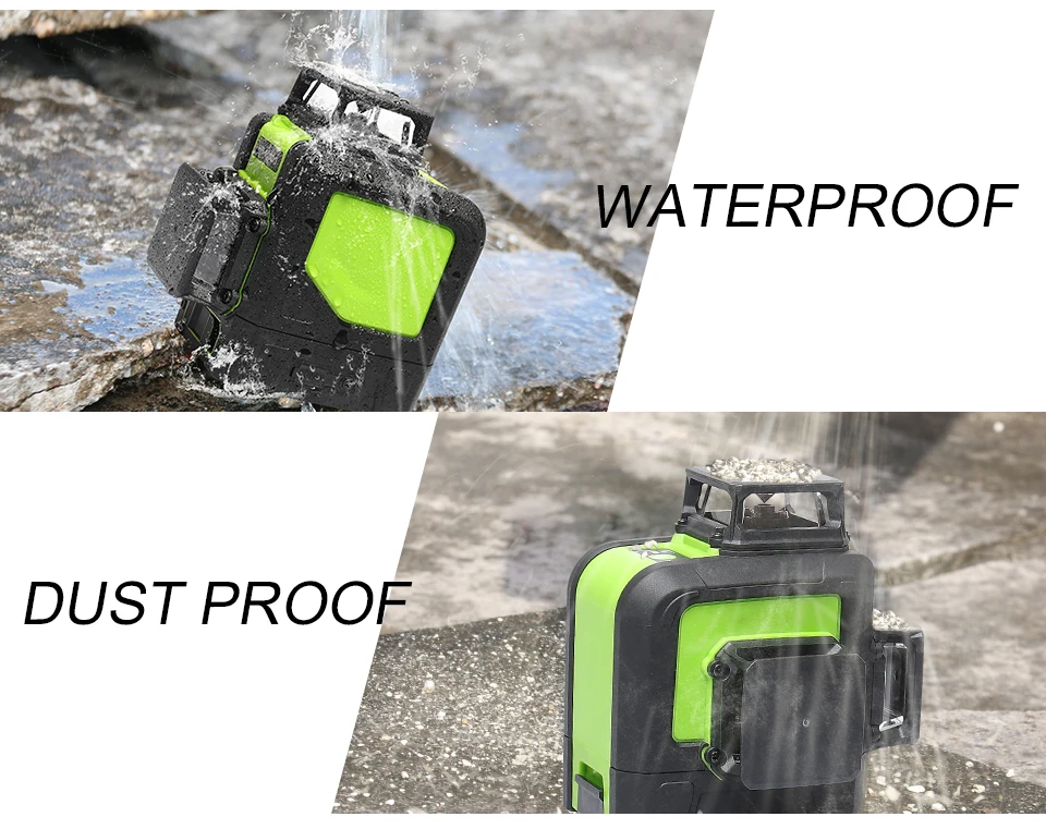 Лазерный уровень имеет три лазерных окна, каждое окно может запускать 4 лазерных линии, всего 12 лазерных линий (4 лазерных линии объединяются в плоскость). Внимание: есть по крайней мере 4 лазерных линии, они не могут держать 1 или 2 лазерных линии.