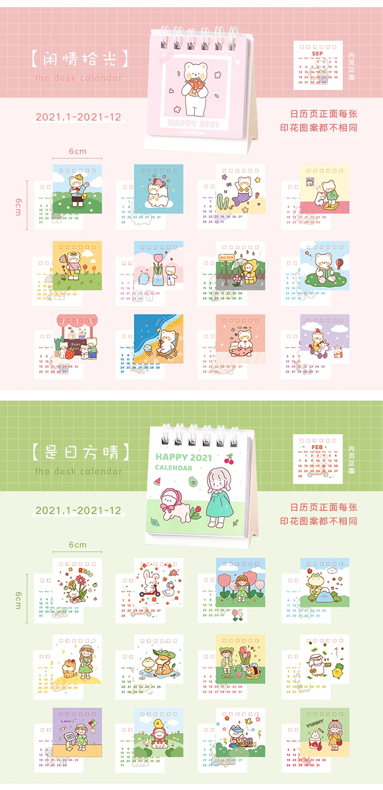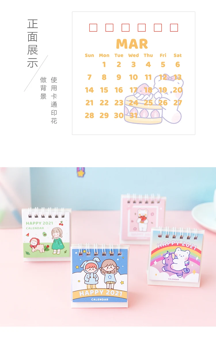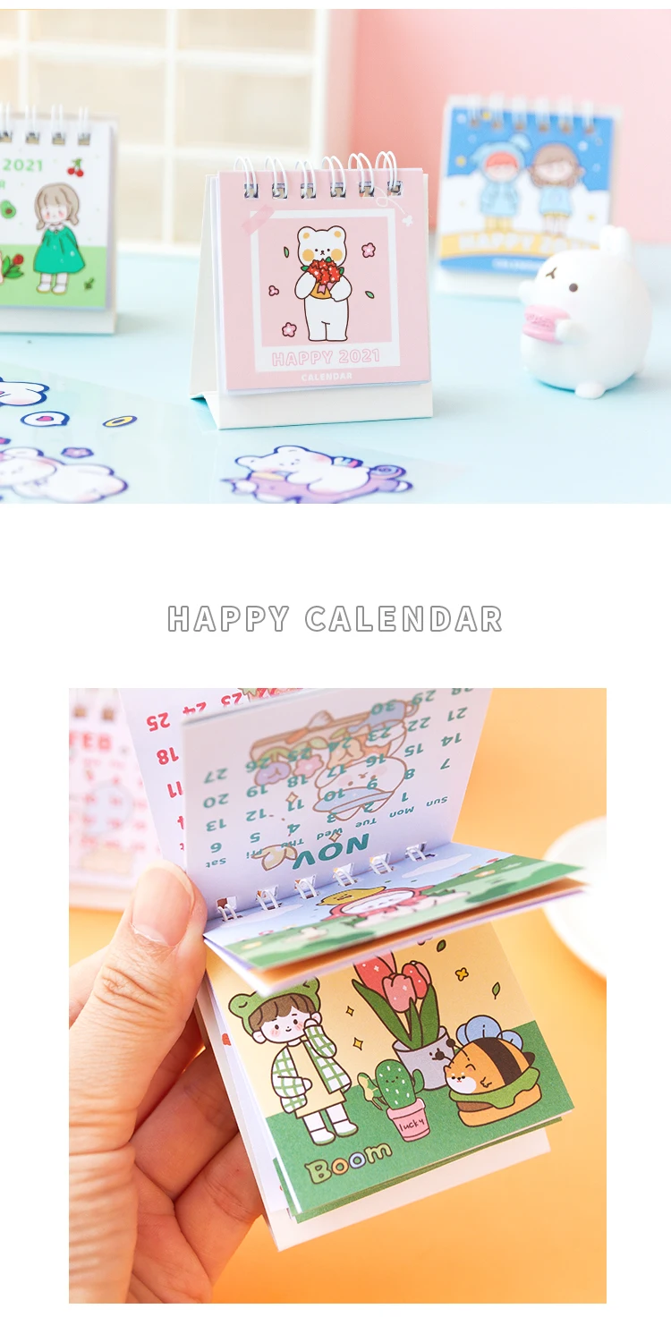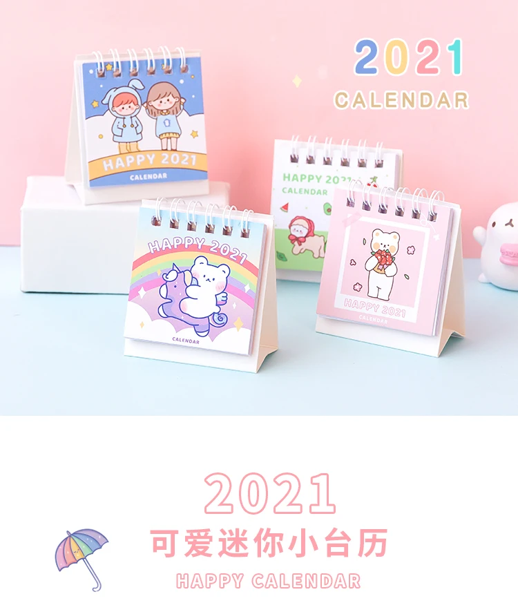 2021 Kawaii Мини Портативный Настольный календарь школьные офисные аксессуары для дома