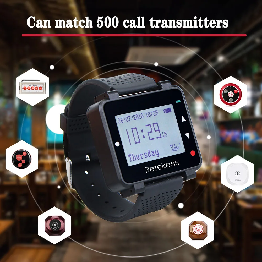 Retekess T128 ресторанный пейджер, беспроводная система вызова официанта, 2 приемника часов + 15 шт., кнопка вызова TD017 для кафе-бара, клиника