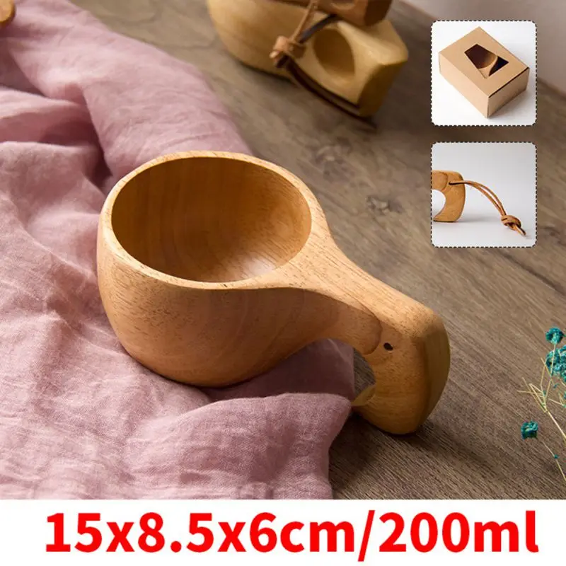 Уличная деревянная чашка, кружка для чая и кофе, портативная чашка из натурального дерева для питья молока с ручкой, домашний декор, посуда для напитков Kuksa Kasa, чайная чашка