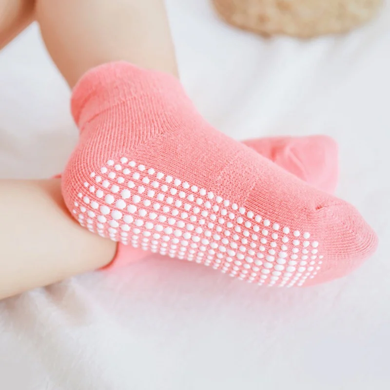 2. Нескользящая резина с круглым захватом покрывает всю подошву стопы, чтобы поддерживать вашего ребенка при ползании, ходьбе и беге по любой поверхности, включая деревянный пол и даже на улице.