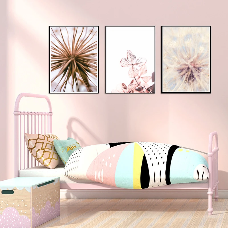 Картина на холсте в скандинавском стиле с изображением розового одуванчика, плакаты и принты Love Life, настенные картины для украшения гостиной