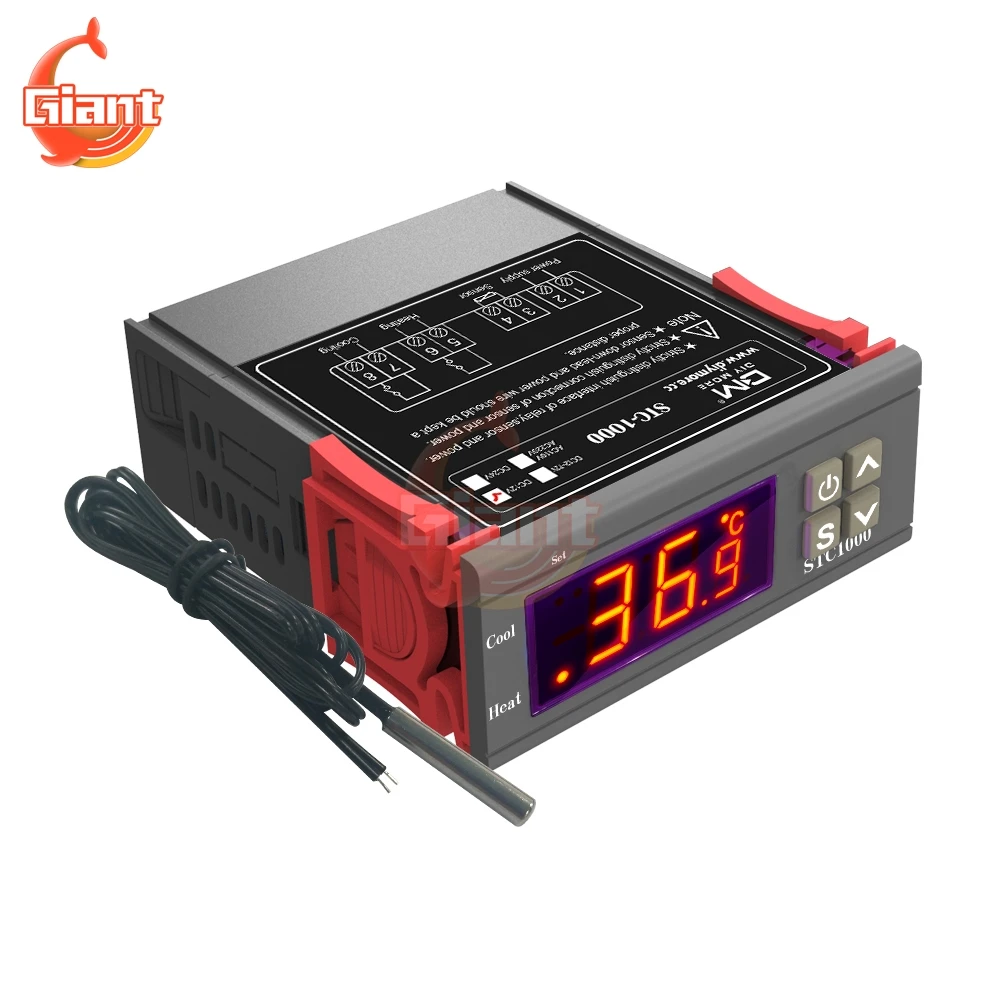 2 шт., STC-1000, цифровой термостат, терморегулятор, реле нагрева, переключатель охлаждения, управление, 12 В, 24 В, 110 В, 220 В, регулятор температуры
