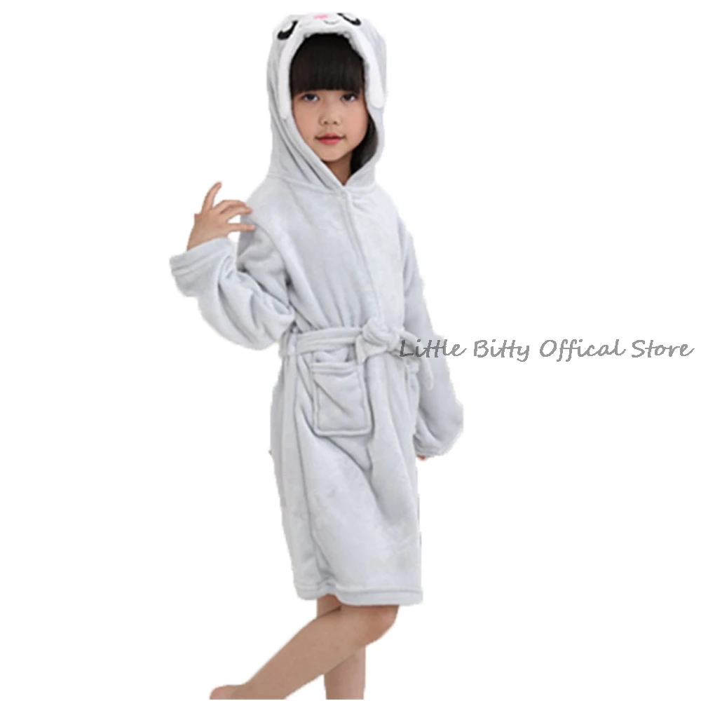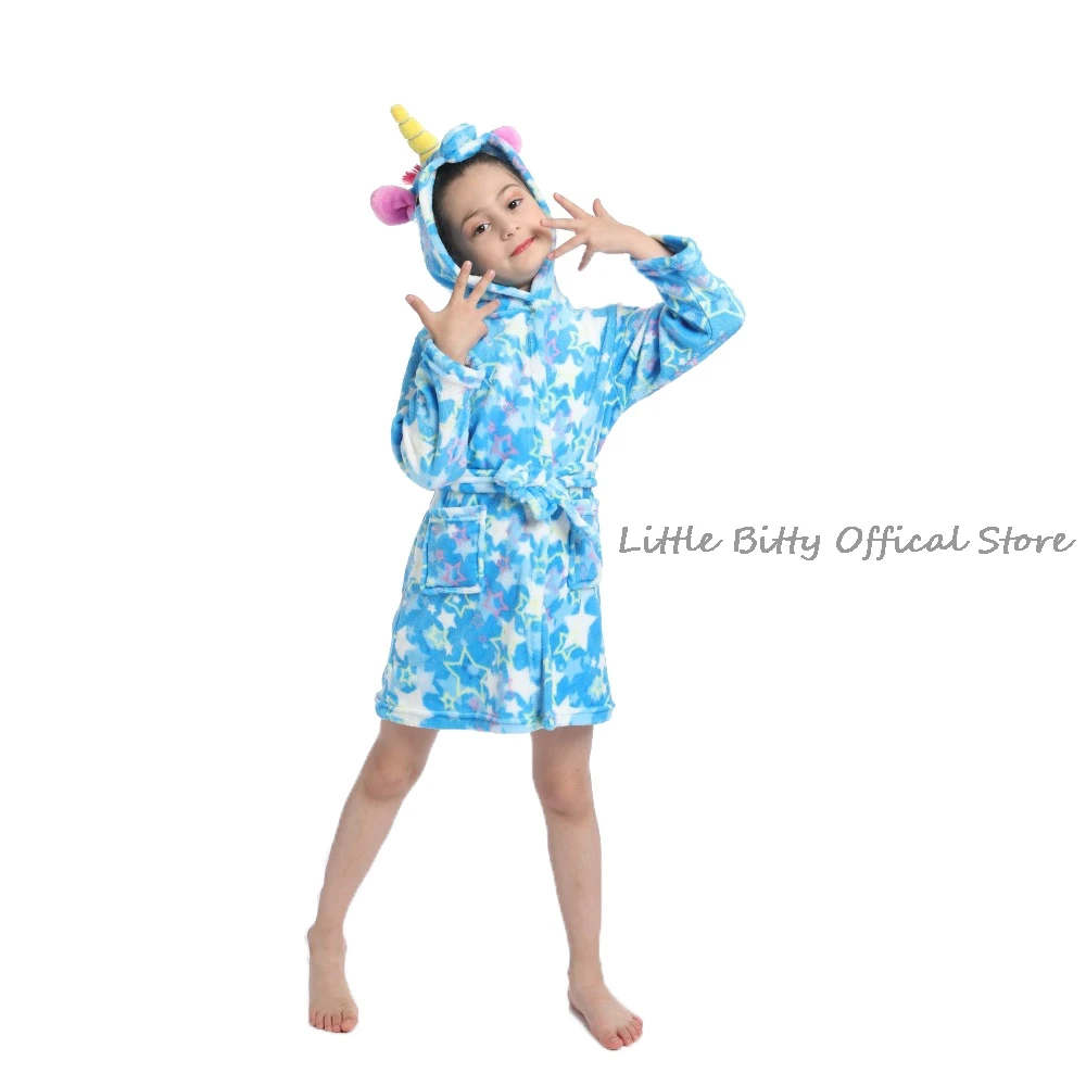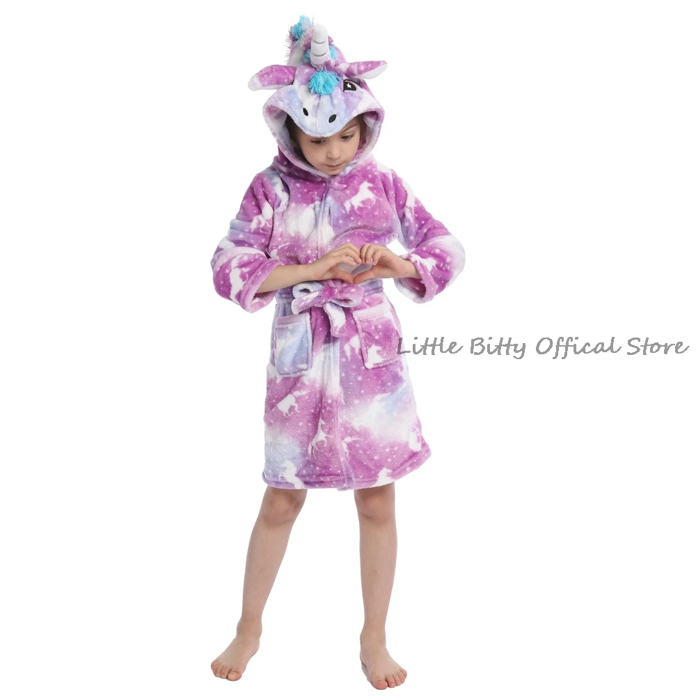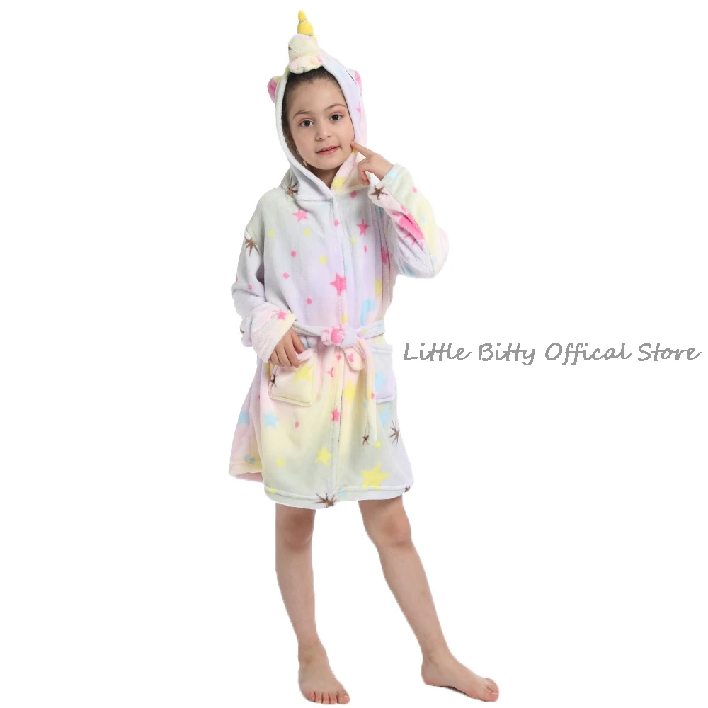 Зимние банные халаты с длинным рукавом для девочек, детский халат с единорогом для 2-11 лет, пижама, одежда для сна, пляжные полотенца, одежда для сна с единорогом