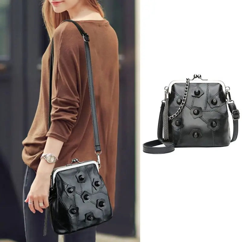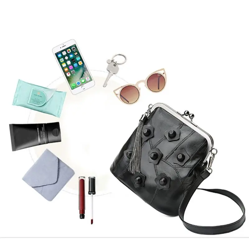 Мини-сумка из овечьей кожи на цепочке, женская сумка через плечо с заклепками и кисточками, Повседневная сумочка-клатч для венецивечерние НКИ, выпускного вечера, коктейля