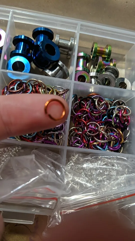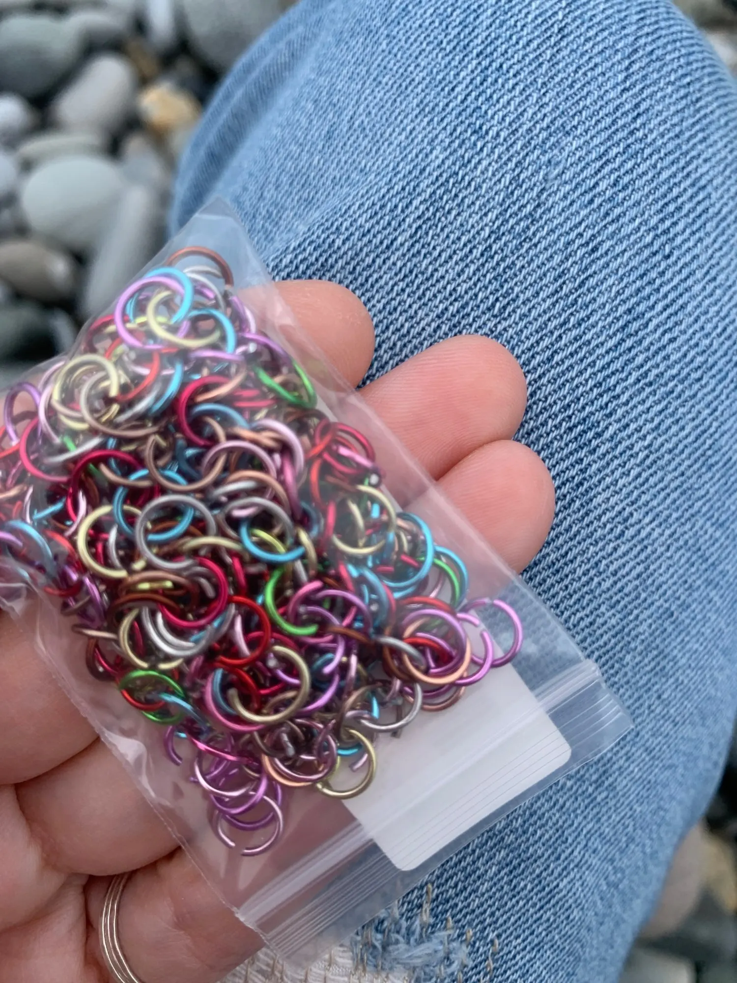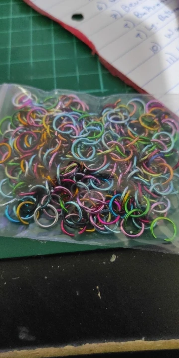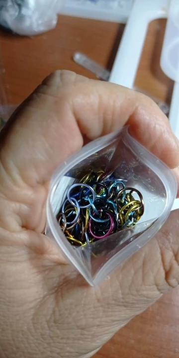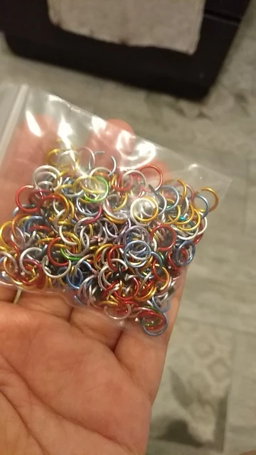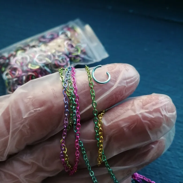 Сильно просчиталась с размером, на фото с цепочкой видно( цепочка со звеньями 2мм), но вины продавца тут нет: в описании всё чётко указано. Постаралась показать все цвета, что были в миксе. На последнем фото колечко с содранной краской( таким и было, специально шкрябать не пыталась)