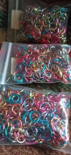 Великолепные кольца, однако между тремя пакетами я получил одинаковые точные цвета, и было немного огорчено, я надеюсь на смешку между всеми из них, а не из шести, может быть, 7? Цвета. Сочетание серебристого, черного, розового, зеленого, светло-синего и золотого. Нет красного цвета, нет более глубокого синего или даже павлина. Все 3 пакета одинаковые.