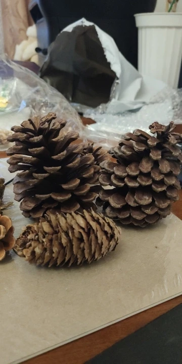 Немного поломались, хотя упакованы были старательно. Шишки очень красивые!