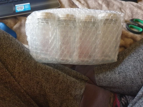 Он приносит меньше наклеек маркера, чем количество флаконов. Банки очень хорошо упакованы