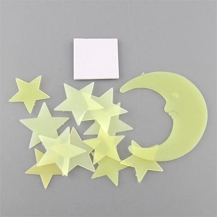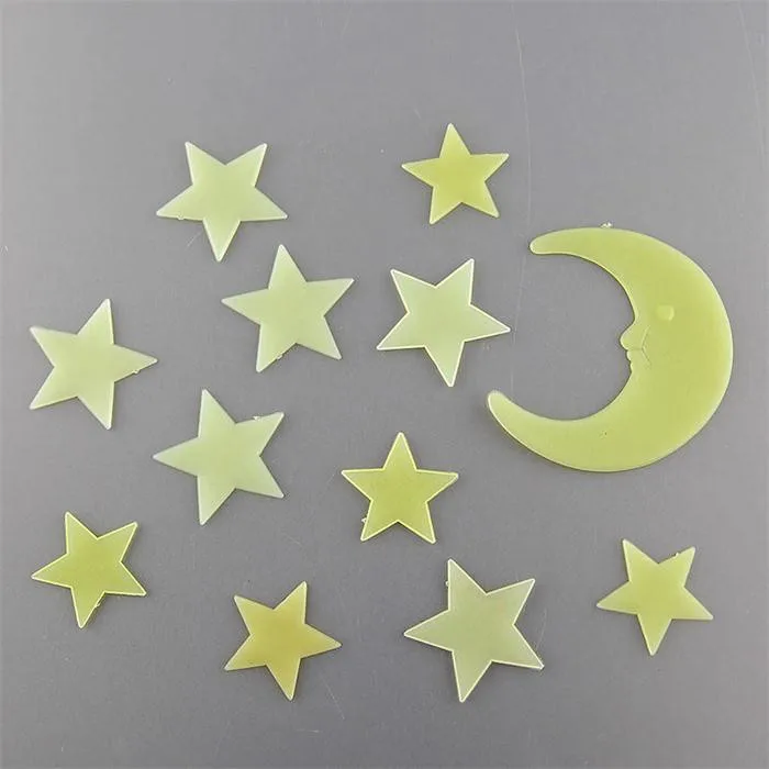 (11 звезд + 1 луна)набор звезд Луна солнце светится в темноте светящиеся флуоресцентные домашние настенные наклейки Наклейка