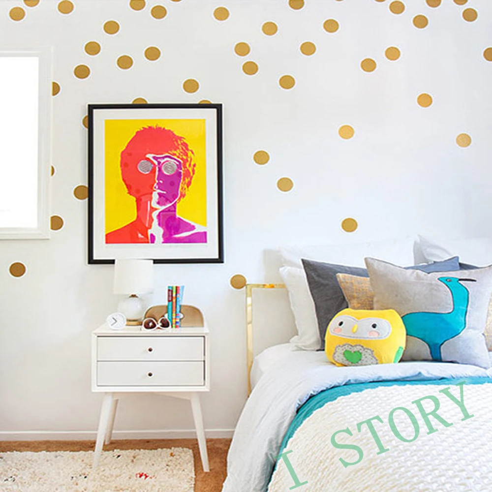 Золотые настенные наклейки в горошек для детей, девочек, мальчиков,...
