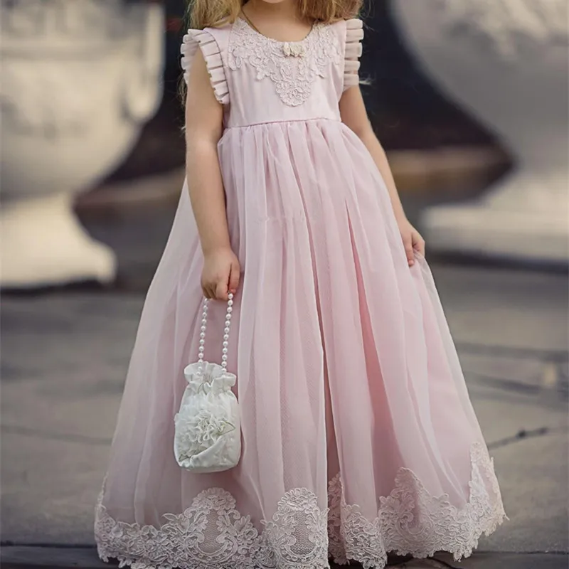 Кружевное длинное платье для девочки с цветами для свадебной вечери...